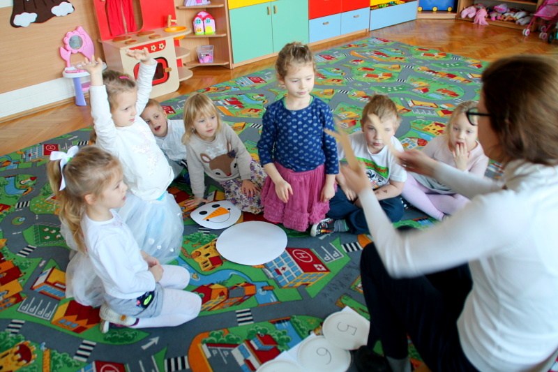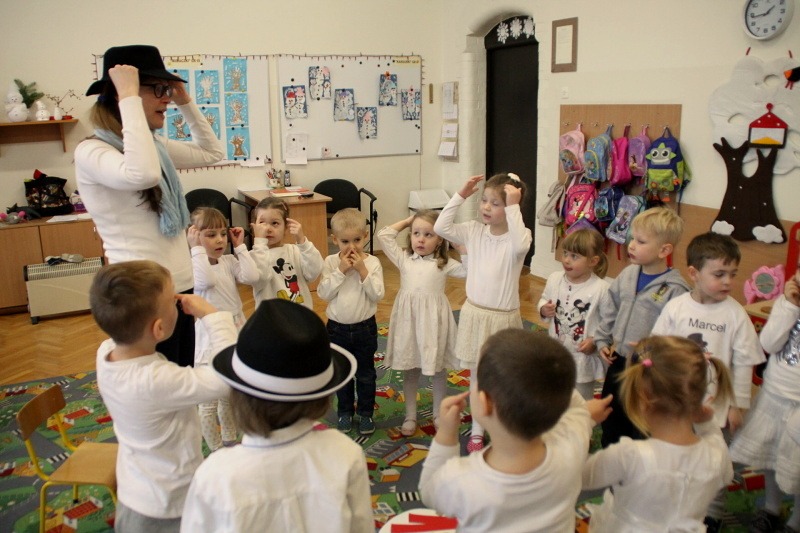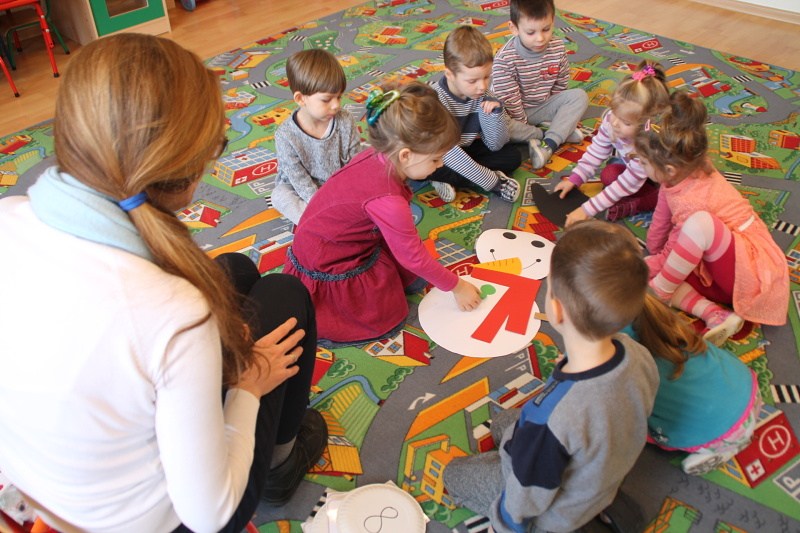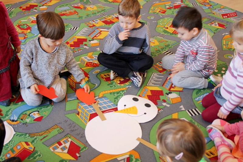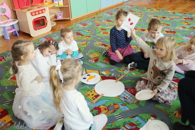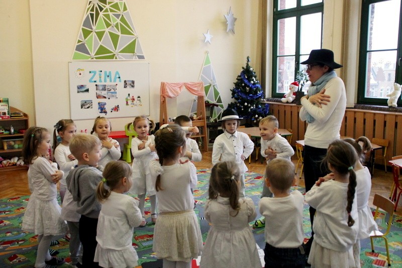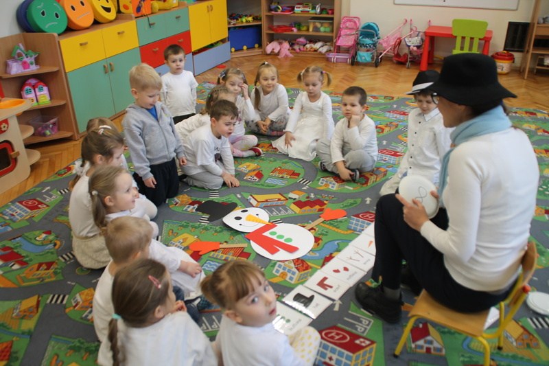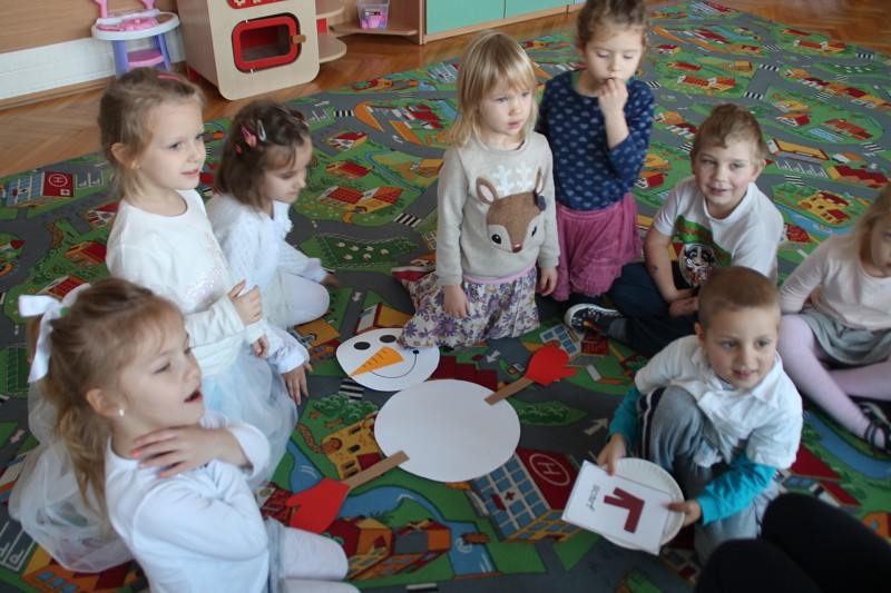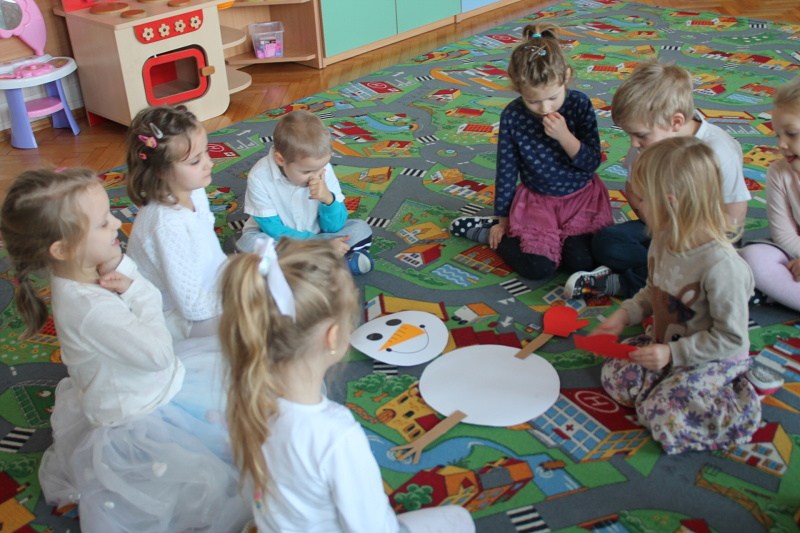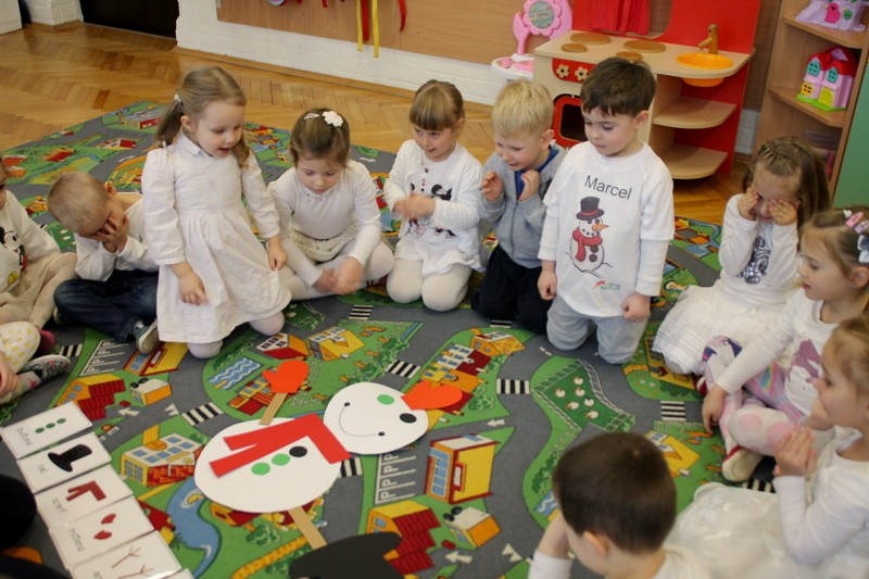 Roztapiający się śnieg uniemożliwił w trakcie czwartkowych zajęć z języka angielskiego ulepienie prawdziwego bałwana. Ale dzieci z pałacowej Akademii Edukacji Przedszkolaka poradziły sobie i zrobiły go z… papieru. W trakcie tworzenia papierowego bałwana miały okazję poznać nowe angielskie słowa i utrwalić te, które już znają. Kolory, liczby, części ciała i ubrania – wszystkie wyrazy, oczywiście w języku angielskim wykorzystane zostały w trakcie zabawy. Nie zabrakło piosenek o zimie, tańca i zimowych zagadek.