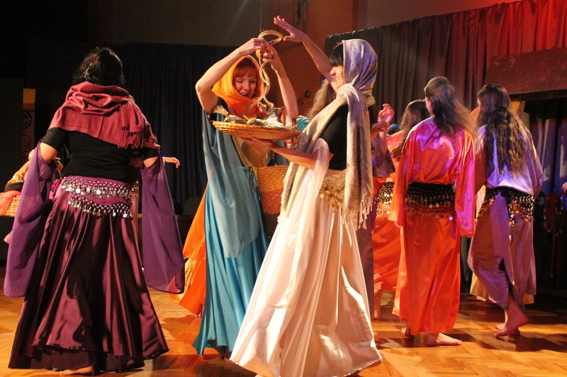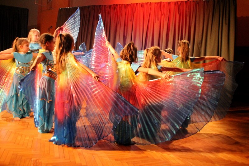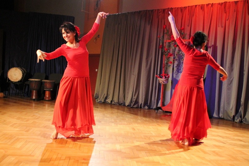 Tym razem tancerki z Pracowni Tańca Etnicznego miały okazję zaprezentować również swoje zdolności aktorskie. A to za sprawą scenek rodzajowych, które wprowadzały publiczność do tematyki każdej części widowiska. Dzięki temu i wspaniałym dekoracjom, które przygotowała p.Anna Rink i tancerki etniczne podczas Etnicznych Warsztatów Twórczych, można było choć przez chwilkę poczuć się jak na słonecznej, hawajskiej plaży, czy na afrykańskiej i hiszpańskiej ulicy albo usiąść w wyobraźni w wiosce indiańskiej czy zobaczyć jak tętni życiem targ w marokańskim Marakeszu.