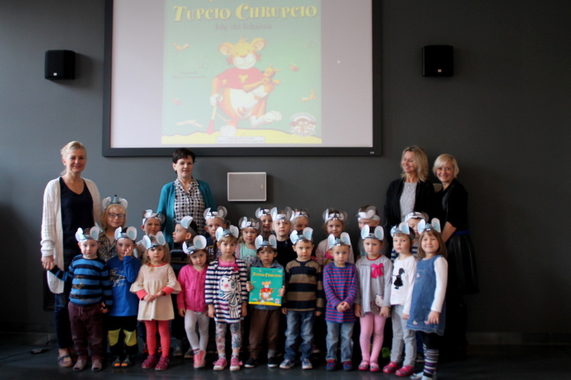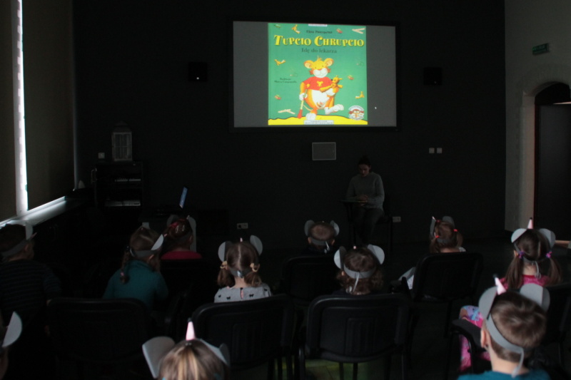 W środę, 1 lutego pałacowe przedszkolaki wysłuchały kolejnej opowieści o małej myszce. Tym razem Tupcio Chrupcio po upadku z wysokiej drabinki na placu zabaw, wraz z mamą znalazł się na pogotowiu. Tam dowiedział się, że wizyta u lekarza wcale nie jest taka straszna jak mu się wydawało. Miły pan doktor zabandażował mu łapkę i nie zapomniał również o opatrunku dla jego przytulanki. Dzieci po lekturze miały okazję porozmawiać nie tylko o tym, dlaczego nie warto się bać doktora ale również o tym, jak ważna jest bezpieczna zabawa.