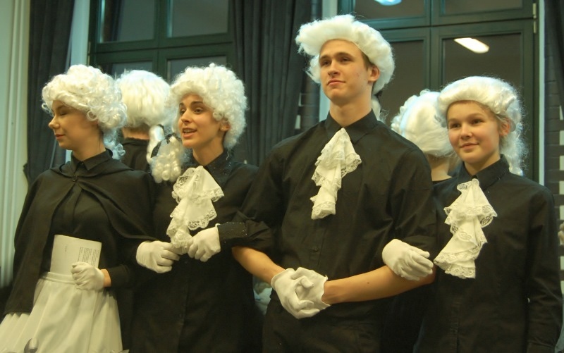 Po zeszłorocznej przygodzie z kulturą wiktoriańską w wydaniu George’a Bernarda Shaw’a Pomorska Trupa Pałacowa zaprasza na spektakl barokowo-oświeceniowy w nieco nowoczesnej wersji. Na warsztat poszedł „Kandyd, czyli optymizm” Woltera – osiemnastowieczna powiastka filozoficzna, opowiadająca o przygodach młodego prawie arystokraty – Kandyda – wyedukowanego w wierze, iż żyje w „najlepszym z możliwych światów”, a wyrzuconego z domu za miłość do panny Kunegundy (wyżej urodzonej). Optymizm głównego bohatera zostaje skonfrontowany z bolączkami tego świata – wojną, hipokryzją religijną czy siłami przyrody. „Kabaroque Kandyd”, bo taki jest tytuł spektaklu, w swej formie nawiązuje do występów kabaretowych i teatrów rewiowych, których zasadniczą częścią jest zapewnić widzowi rozrywkę. Lecz niech ten sposób narracji nikogo nie zwiedzie. „Kabaroque Kandyd” ma widzowi więcej do zaoferowania niż jedynie pusty śmiech. W załączeniu kilka zdjęć z próby.