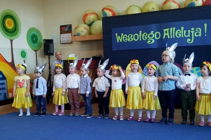 Z okazji Świąt Wielkanocnych w naszej Akademii dzieci z grup Motylków, Kangurków i Misiaczków zaprosiły rodziców na spotkanie świąteczne, które wprowadziło wszystkich w wielkanocny nastrój. Wspólnie uczestniczyli w warsztatach plastycznych, na których wykonali ozdoby świąteczne – koszyczek oraz kartkę z zajączkiem, które będą miłą ozdobą na święta. Następnie dzieci z każdej grupy prezentowały występy artystyczne na temat tradycji i zwyczajów wielkanocnych. Wszystkim składamy słoneczne życzenia z okazji Świat i dziękujemy za wspólne spotkanie.