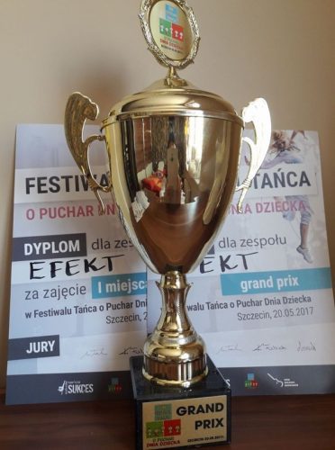 Po północy zakończyły się zmagania najstarszych tancerzy, którzy wzięli udział w Festiwalu Tańca o Puchar Dnia Dziecka w dniu 20 maja 2017r. zorganizowanego przez Szkołę Tańca Sukces w Szczecinie. Pracownię gimnastyczno-taneczną, której opiekunem artystycznym jest Dorota Lindner-Baran tym razem reprezentowały tylko 2 zespoły: Efekt, który wystąpił w kategorii powyżej 15 lat oraz Impuls startujący w kategorii 12 – 15 lat. Impreza corocznie gromadzi tysiące tancerzy prezentujących kilkaset choreografii. Nasze dziewczęta spisały się znakomicie. Zespół Efekt zdobył bowiem najwyższe trofeum zawodów – uzyskując Grand Prix w najstarszej kategorii wiekowej powyżej 15 lat. Ponadto dziewczęta uzyskały 2 I miejsca, 5 II miejsc, 5 III miejsc oraz 4 wyróżnienia. Niedługo trudno będzie pomieścić wszystkie trofea dziewcząt! Serdecznie gratulujemy! Oto szczegóły: