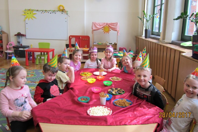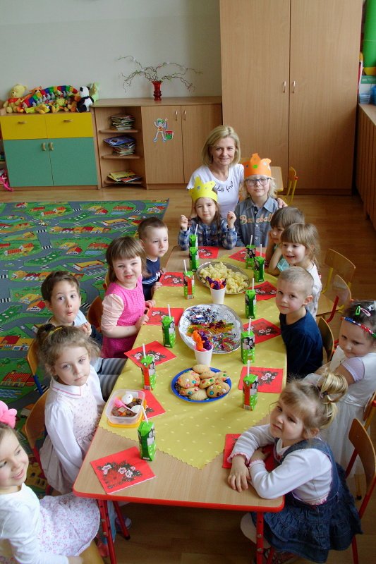 28 kwietnia w Akademii Edukacji Przedszkolaka kolejni Jubilaci obchodzili swoje święto. W grupie I MOTYLKI – Lenka i Miłoszek, w grupie II KANGURKI – Basia, a w grupie III MISIACZKI – Tamara i Cornelka. Jak zawsze Jubilaci usłyszeli głośne „Sto lat”, zaśpiewane przez dzieci i panie. Były tańce, zabawa i radość. Nie zabrakło ulubionych przez dzieci słodkich przekąsek, przygotowanych przez rodziców. Jubilatom życzymy spełnienia marzeń!