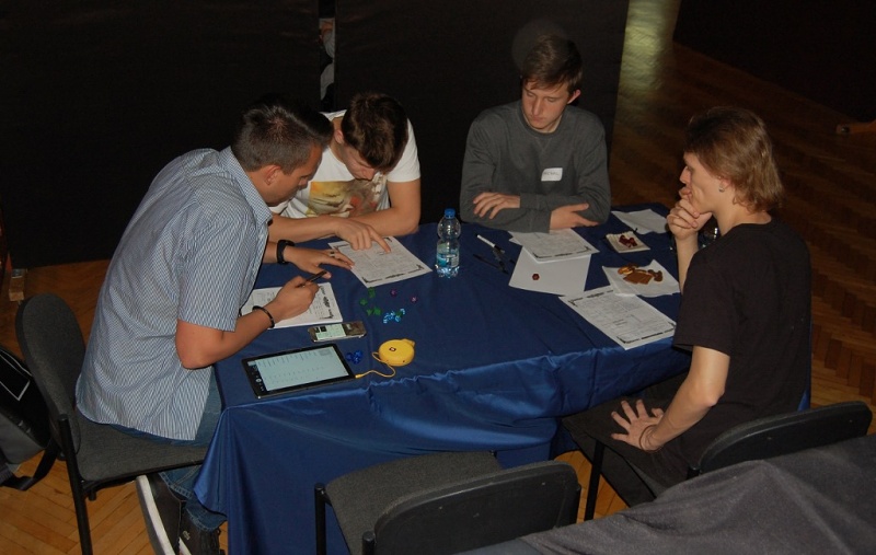 Między kwietniową a majową odsłoną „Kości” minęło sporo czasu. Po PUF-owym zawrocie głowy nasi Mistrzowie mieli dużo czasu na odpoczynek i spokojne przygotowanie się do kolejnego spotkania z graczami przy stole. Choć za oknem pogoda nie wskazywała na to, by w sobotę 20. maja chciało nam się przybyć do Pałacu Młodzieży i w cieple rozgrzanej auli zasiąść do sesji, to na całe szczęście niebo spochmurniało, dając nam choć na chwilę wytchnienie przed wiosennymi upałami. Pozwoliło to również na stworzenie niezbędnego klimatu dla tak, zdawałoby się, intymnej rozrywki, jaką jest RPG. Tym razem nasi Mistrzowie przygotowali dla Was takie oto sesje:
