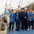 Kapitanem żaglowca był jachtowy kapitan żeglugi wielkiej Ziemowit Barański – człowiek legenda wśród żeglarzy. Po wypłynięciu ze Świnoujścia skierowaliśmy się do Sassnitz – portu niemieckiego na wyspie Rugia. Nasi uczniowie zostali przypisani do wachty II wraz z dziewczynkami z innej szkoły. Do naszej wachty należała obsługa żagla zwanego fokiem oraz w przypadku manewrów portowych obsługa trapu i odbijaczy na burcie.