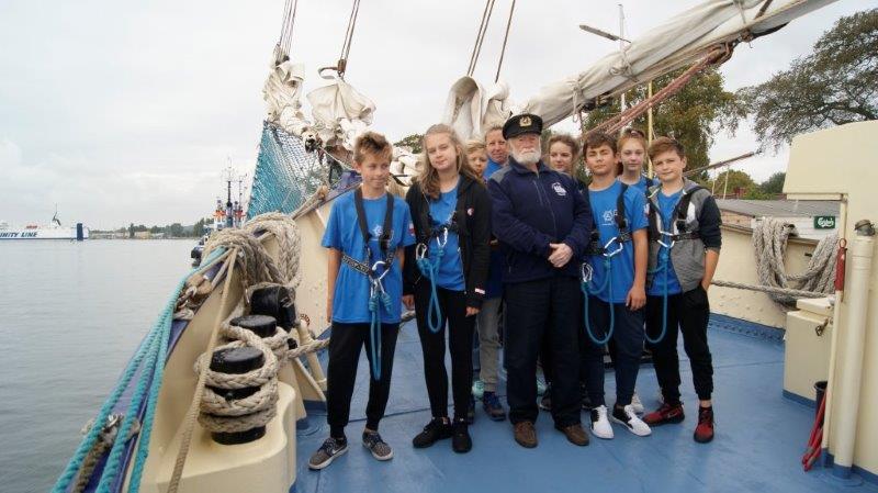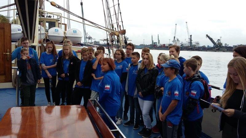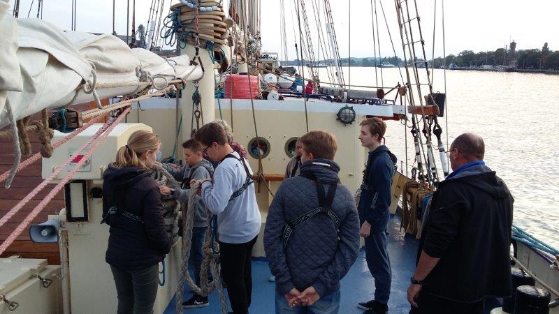 Kapitanem żaglowca był jachtowy kapitan żeglugi wielkiej Ziemowit Barański – człowiek legenda wśród żeglarzy. Po wypłynięciu ze Świnoujścia skierowaliśmy się do Sassnitz – portu niemieckiego na wyspie Rugia. Nasi uczniowie zostali przypisani do wachty II wraz z dziewczynkami z innej szkoły. Do naszej wachty należała obsługa żagla zwanego fokiem oraz w przypadku manewrów portowych obsługa trapu i odbijaczy na burcie.