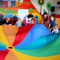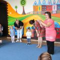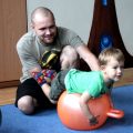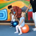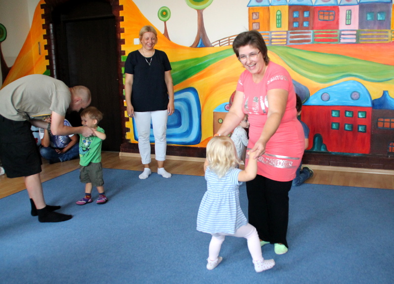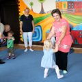W trakcie zajęć rytmicznych najmłodsze dzieci w obecności rodziców tańczą i śpiewają. Nie brakuje zajęć ruchowych z wykorzystaniem m.in. piłek i chusty KLANZA. Poniżej na zdjęciach zajęcia w grupie 2 -latków pod opieką Barbary Marcinkowskiej – Boruszak.