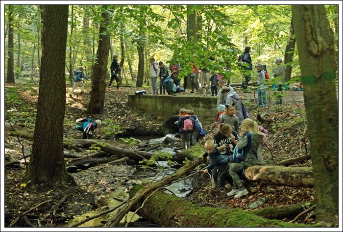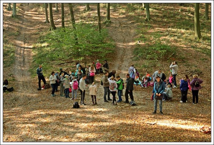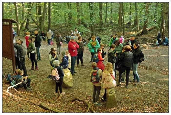 W sobotę, 30 września, wędrowaliśmy po Puszczy Bukowej. Wędrówka rozpoczęła się na pętli autobusowej Osiedle Bukowe. W dobrych humorach, ruszyło na Leśną Sobotę ponad 90 młodych turystów wraz z opiekunami i rodzicami. Pogoda była wspaniała. A że był to Dzień Chłopaka wszystkie dziewczyny złożyły małym i dużym chłopcom życzenia. Każdy z nich dostał na „osłodę” po lizaku. Wędrowaliśmy czerwonym szlakiem do tzw. Bramy Czwójdzińskiego. Po drodze mijaliśmy wiele ciekawych okazów pomnikowych drzew i głazów, których w Puszczy Bukowej jest mnóstwo. Humory, jak zwykle, dopisywały. Na miejsce złazu dotarli jeszcze ci, którzy wędrowali dowolnymi trasami. W rajdzie wzięło udział 105 osób z 7 szkół.