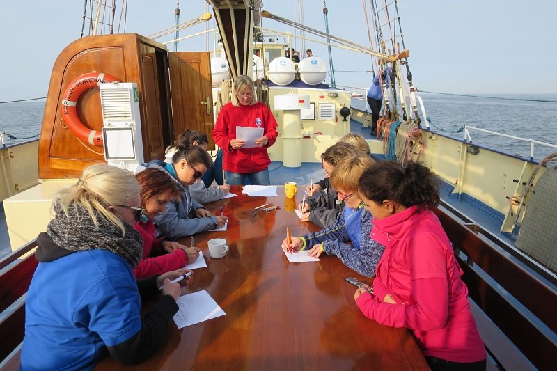 Uczestnikami ostatniego rejsu byli nauczyciele – opiekunowie SKEM. Dla nich program szkoleniowy był jeszcze bogatszy – jak na zdjęciach. Pożeglowali ze Świnoujścia do Peenemunde, zwiedzili tam Muzeum Historyczno-Techniczne, potem wrócili przez Zalew Szczeciński do Szczecina, gdzie warsztaty zostały zakończone. Łącznie w nagrodę za zwycięstwa w konkursach Wiedzy Morskiej uczestniczyli w rejsach uczniowie i nauczyciele ze szkół SP 37 i 23, oraz gimnazjów 6 i 14; pozostałe placówki reprezentowali liderzy i Opiekunowie SKEM, m.in. SP 1, 5, 11, 41, 44, 45, 61 i 65, ZSO 4, ZS 3, ZCEMiP, ZS 8, ZSEE, ZS 5, PM-PCE, i z przedszkoli.