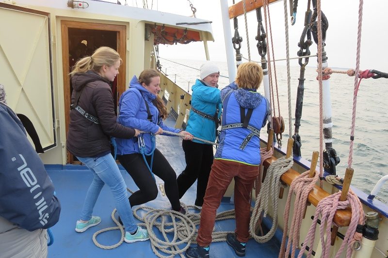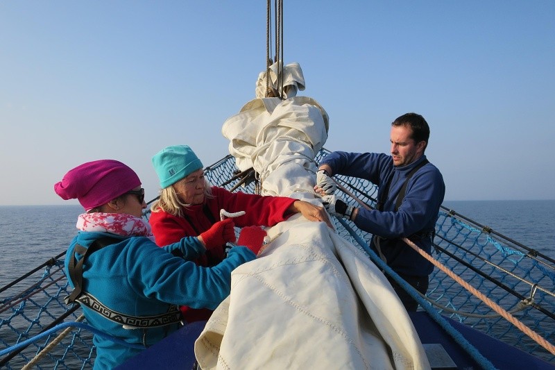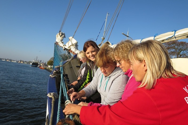 Jesiennie, na Bałtyku i na Zalewie Szczecińskim, na przełomie września i października br., na pokładzie żaglowca STS „Kapitan Borchardt”. Tak uczniowie i nauczyciele, uczestnicy i laureaci Szczecińskiego Programu Edukacji Wodnej i Żeglarskiej, z prawie 30 Szkolnych Kół Edukacji Morskiej przy szczecińskich placówkach oświatowych, uczestniczyli w organizowanych przez Wydział Oświaty i Pałac Młodzieży warsztatach żeglarskich, w formie kilkudniowych rejsów szkoleniowo-edukacyjnych. Właśnie w ramach rozpoczęcia nowego kolejnego już 22. roku realizacji wspomnianego Programu zorganizowano cztery takie rejsy szkoleniowe, w terminach pomiędzy 19 września a 18 października br., z autokarowymi podmianami załogantów w Świnoujściu. Uczestnicy warsztatów posmakowali morskiej przygody, morza i żagli na pokładzie żaglowca, przy pracy przy linach, podczas wacht trapowych w portach i wacht nawigacyjnych na morzu, i podczas dodatkowych zajęć „świetlicowych”, w mesie czy na pokładzie. Pogody były różne, czasem wręcz sztormowe, ale wszyscy zdali morski egzamin. Była też okazja do zwiedzenia Muzeum Rybołówstwa Morskiego w Świnoujściu, i tamtejszej żeglarskiej mariny w Basenie Północnym.