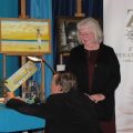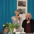 Przybyli goście mogli posłuchać komentarzy do prezentowanych fragmentów obszernej opowieści-dialogu dwojga bohaterów: Hanny i Adama, którzy przy okrągłym stole/ tak, tak… o wielu znaczeniach wyrażenie/ przez całą noc snują wspomnienia swojego życia z podobieństwami i odmianami widzenia tych samych wydarzeń dziejowych w przestrzeni i czasie od lat 1980. do współczesności. Prywatne losy bohaterów wpisują się mocno w historyczny już dzisiaj czas przemian ustrojowych Polski, także i Niemiec oraz całej Europy ostatnich dwóch dekad. A może ten czas kreuje takie a nie inne losy? Oto pytania-problemy towarzyszące refleksjom nad książką Rozmowa …z jednej nocy Danuty Romany Słowik, które mogli roztrząsać w październikowy wieczór w zaciszu pałacowej sali przy słodkim poczęstunku zaciekawieni słuchacze, gdy nad Szczecinem szalał huragan Xsawery, mający za nic nasze ludzkie dzienne, a tym bardziej artystyczne, sprawy.