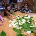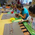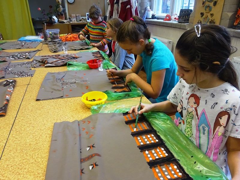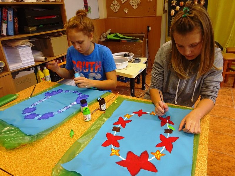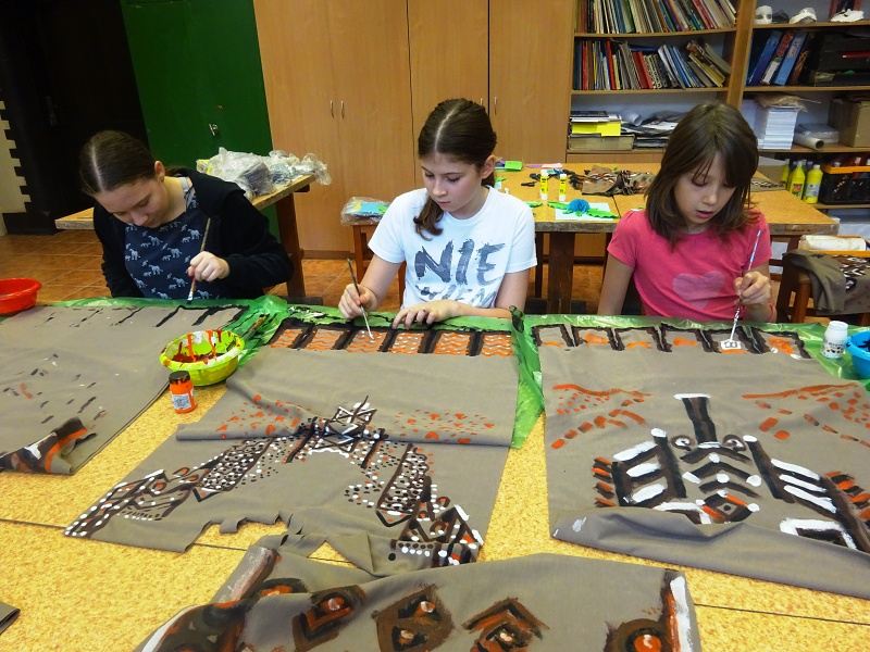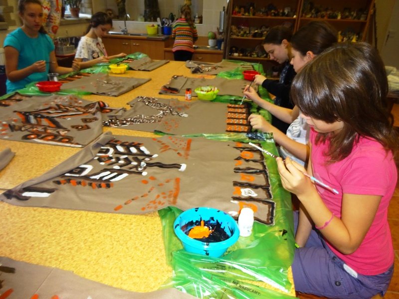 Etniczne Warsztaty Twórcze Pracowni Tańca Etnicznego pod kierunkiem p.Justyny Kozłowskiej zakończyły etap tworzenia nowych kostiumów do tańca afrykańskiego grupy ,,Mała Etna”. W ostatnią sobotę, dziewczęta własnoręcznie pomalowały swoje tuniki. Każda wykonała wyjątkowy, niepowtarzalny strój. Kolejny raz okazało się, że dziewczęta nie tylko pogłębiają wiedzę w dziedzinie tańców etnicznych, ale mają też prawdziwe talenty plastyczne. Warsztaty prowadzone przez ich nauczycielkę tańca były również przygotowaniem do widowiska hawajskiego, które odbędzie się 15 grudnia tego roku. ,,Mała Etnika” wykonała hawajskie girlandy z kwiatów, a ,,Etnika” kwiaty na papierze techniką origami. Grupa ,,Etna „namalowała piękne ,,lei” na tkaninach. Podczas każdego spotkania miło, wesoło i przede wszystkim twórczo płynie czas…