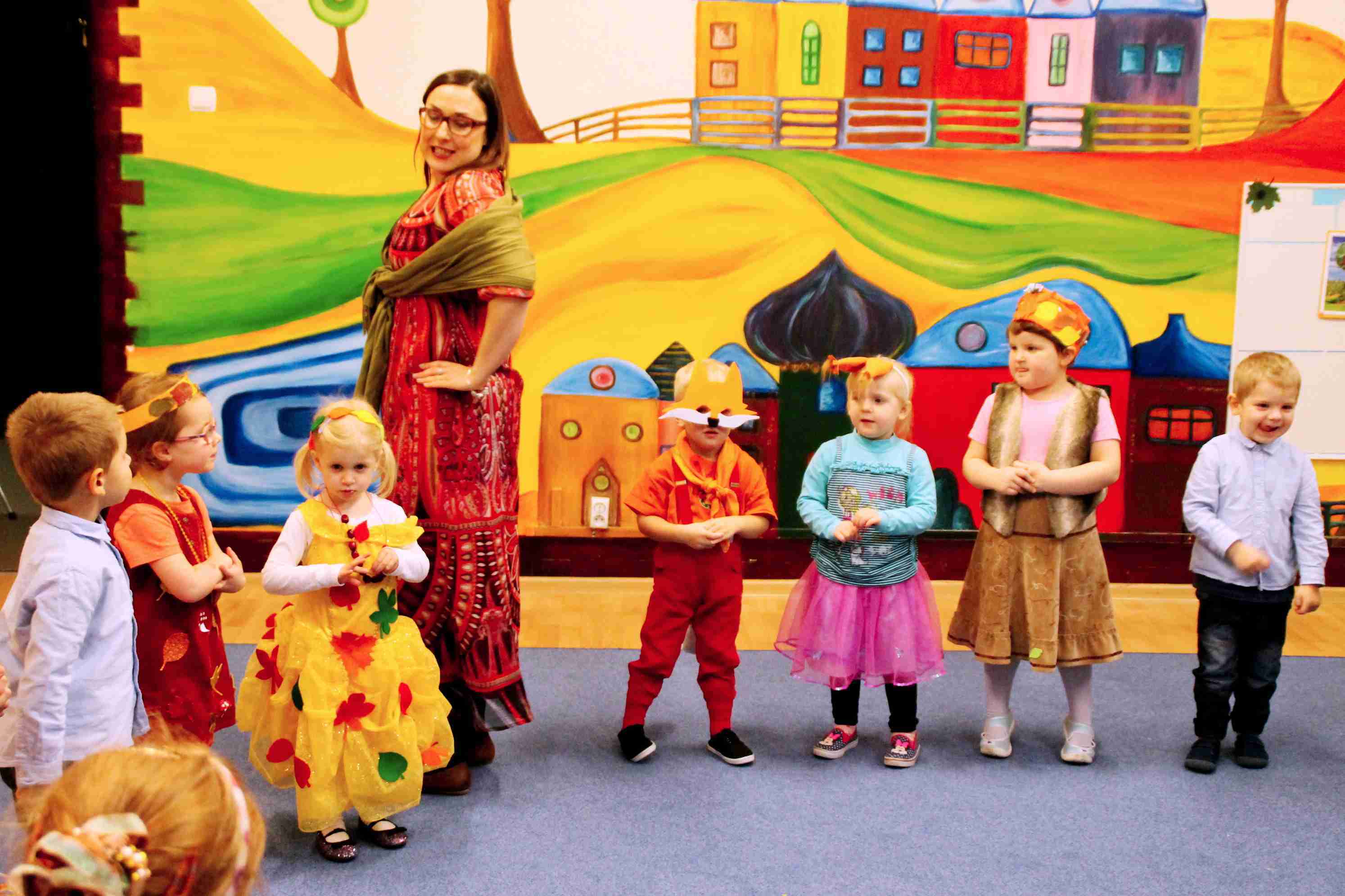 Pod takim hasłem odbył się w naszej Akademii „Bal Jesieni”.Motywem przewodnim zabawy były listy z zadaniami od Pani Jesieni. Korespondencja w formie liści ukryta była w przestrzeni sali a dzieci musiały odnajdywać ją po kolei i wykonywać zawarte w niej prośby.Były to: POKAZ JESIENNYCH STROJÓW, PIECZENIE CIASTECZEK Z JESIENNYCH OWOCÓW, ROZWIĄZYWANIE ZAGADEK O JESIENNEJ TEMATYCE ORAZ PREZENTOWANIE JESIENNEGO REPERTUARU. Nie zabrakło również tanecznych przebojów oraz zabaw integracyjnych. Mimo braku słońca, chłodu, wiatru i deszczu u nas panowała gorąca i radosna atmosfera. Dziękujemy wszystkim rodzicom i opiekunom, którzy zadbali o piękne stroje dla dzieci. Ale największe brawa należą się dzieciom za spontaniczną i wspaniałą zabawę.