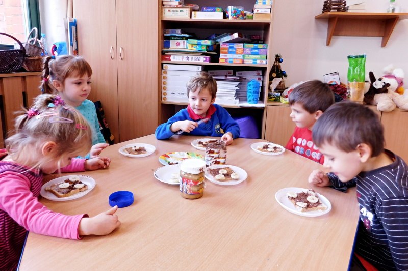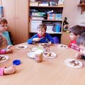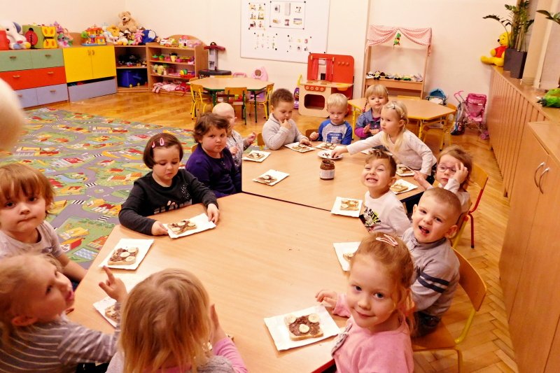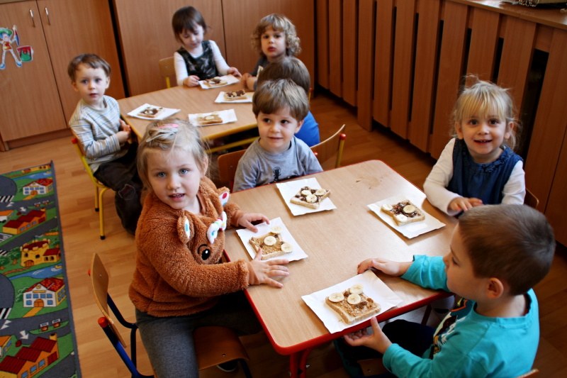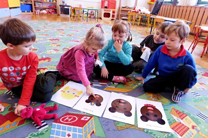Pałacowe przedszkolaki świętowały Dzień Pluszowego Misia również w trakcie zajęć języka angielskiego. Pani Ania przeczytała im historię o trzech misiach i Złotowłosej. To był dobry moment by nauczyć się nowych słów związanych z domem i powtórzyć te poznane wcześniej. Nie zabrakło tańca i angielskich piosenek. A na zakończenie wszyscy zrobili misiowe grzanki, po których można było tylko poklepać się po brzuszkach 🙂