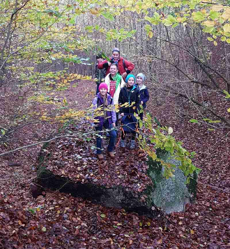 W sobotę, 4 listopada odbył się kolejny rajd po Puszczy Bukowej. Wędrówkę rozpoczęliśmy od pętli na osiedlu Bukowe. Na skraju lasu zobaczyliśmy dwa pomnikowe drzewa „Dęby Krzywoustego”. Idąc dalej zielonym szlakiem napotkaliśmy przeszkodę w postaci zwalonych drzew. Trzeba było zejść ze szlaku, wspiąć się pod górę a potem zbiec na dół, co bardzo nam się podobało. Po pokonaniu tej przeszkody poszukaliśmy głazu Słupieńca, który ukrył się w wodach Słupienicy. Dłuższy postój zrobiliśmy na parkingu leśnym, po wyjściu na Drogę Kołowską, przy głazie „Serce Puszczy”, gdzie wyryto napis: Tutaj czas ma inny wymiar. Zwolnij, tu bije… SERCE PUSZCZY. Do Głazu Krajoznawców, który był celem naszej wycieczki doszliśmy żółtym szlakiem. Stąd idąc Drogą Górską ukończyliśmy nasz rajd w miejscu, z którego wyruszyliśmy :).