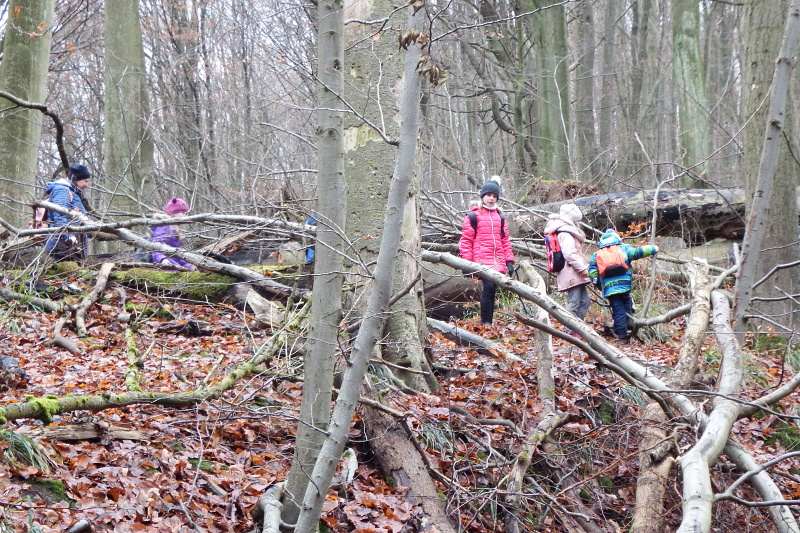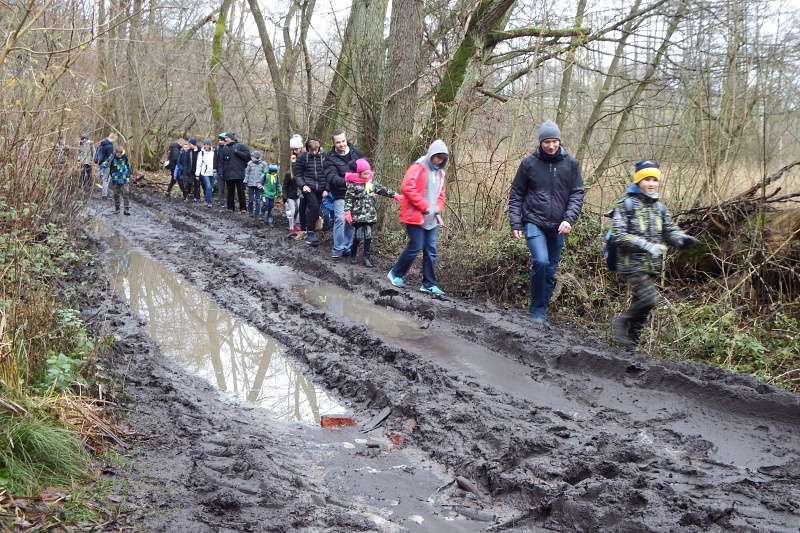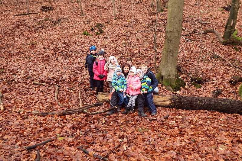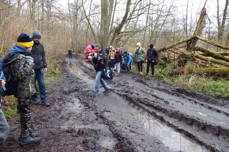 Tym razem mieliśmy szczęście! W sobotę 2 grudnia nie padało! Nawet czasami zaświeciło słońce. Na 967 Leśną Sobotę wybrało się 67 zapalonych turyst, odpowiednio ubranych do wędrówki po kałużach i błocie. Na rajd wyruszyliśmy sprzed jeziora Szmaragdowego zielonym szlakiem. Po drodze mijaliśmy kamienne drogowskazy (jakże przydatne w wędrówce po puszczy) oraz wiele ciekawych okazów pomnikowych drzew i głazów. Gdy dotarliśmy do Szwedzkiego Kamienia zmieniliśmy kolor szlaku na żółty. Podchodziliśmy pod górę drogą Ganek, z której roztaczał się piękny widok na dolinę Marzanny. Miejscem złazu była polana Psie Pole z okazałym dębem Myśliwych. Po krótkim odpoczynku wróciliśmy niebieskim szlakiem do autobusu.