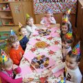 W środę i czwartek obchodziliśmy grudniowe urodziny. W tym miesiącu jubilatami byli: w grupie I – Klara, w gr. II – Rafał, w gr. III – Zuzia. Wszyscy otrzymali korony i balony a potem wspólnie bawili się przy muzyce. Jak zawsze przygotowany przez rodziców słodki poczęstunek był najsłodszą atrakcją dla wszystkich. Życzymy jubilatom „Sto lat!”.