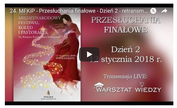 Zapraszamy do obejrzenia transmisji Międzynarodowego Festiwalu Kolęd i Pastorałek – dzień 2, ok. g. 19:20 występ uczestników z Pracowni Wokalnej pod op. art. Dariusza Chmielewskiego.