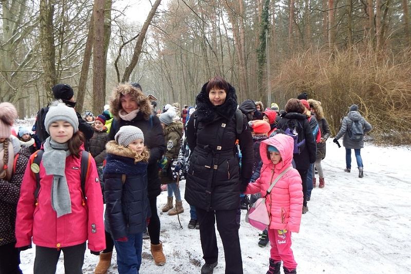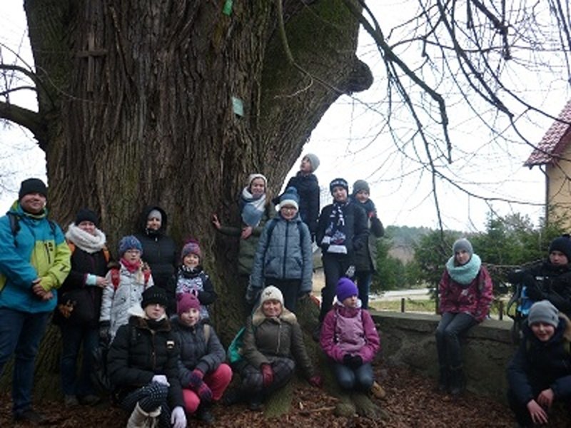 Sobotę 13 stycznia, tuż przed feriami zimowymi, spędziliśmy na 969 Leśnej Sobocie. Mimo iż pogoda budziła pewne obawy, nie zabrakło odważnych turystów do wędrowania. Było zimno, ale grzały nas dobre humory i ciekawe atrakcje na trasie. Wyruszyliśmy z Płoni i szlakiem żółtym przemierzaliśmy Puszczę Bukową. Po drodze wiele radości sprawiły nam spotkane na ul. Deszczowej konie. Było kilka przystanków na zabawę i rozgrzewkę gorącą herbatką. Celem naszej wędrówki była pomnikowa lipa św. Ottona rosnąca przy kościele Najświętszej Rodziny w Płoni. Imię lipy nawiązuje do św. Ottona z Bambergu, który wg legendy miał ją posadzić podczas wyprawy misyjnej na Pomorzu w 1124 roku. Tu był krótki odpoczynek i uzupełnienie potwierdzeń trasy w książeczkach turystycznych. W rajdzie wzięło udział 64 turystów z 6 szkół.