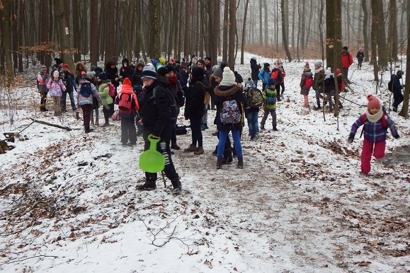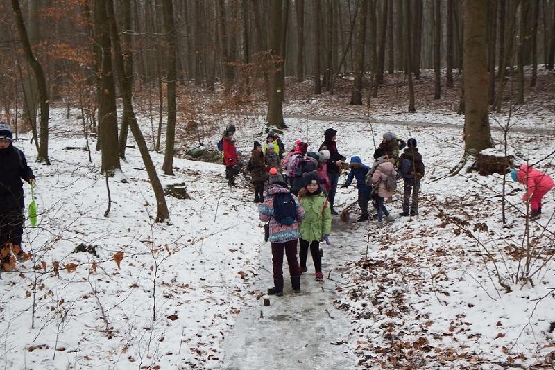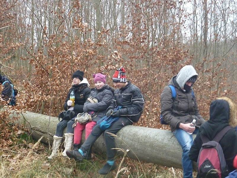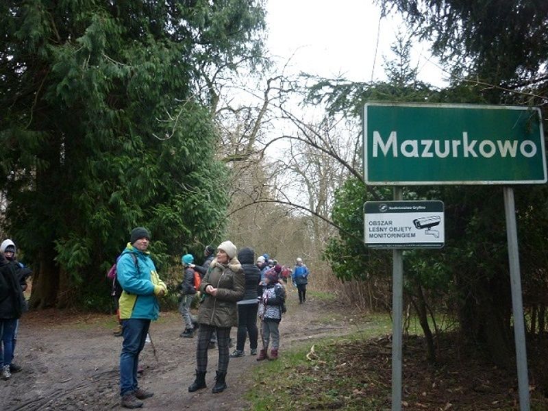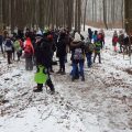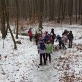 970 Leśna Sobota odbyła się w zimowej aurze. Lekki mróz nie przeszkodził nam w wędrówce. Wyruszyliśmy z Głębokiego spacerowym szlakiem żółtym im. Ireny i Karola. Mieliśmy szczęście, że był mróz, bo niektóre bagniste miejsca na szlaku były do przejścia „suchą nogą”. Na Dzikim Oczku zrobiliśmy sobie przerwę na krótki odpoczynek i drugie śniadanie. Po nabraniu sił ruszyliśmy w stronę Polany Harcerskiej.