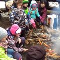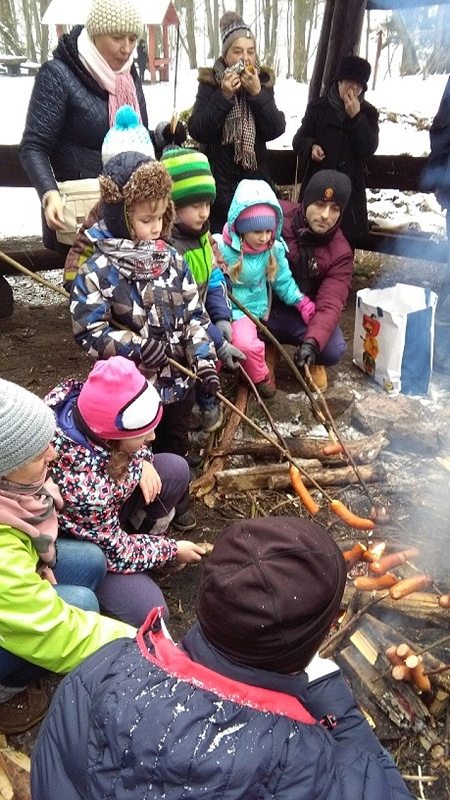 Na mecie rajdu, na Polanie Harcerskiej, uczniowie ze Szkoły Podstawowej nr 14 upiekli na ognisku kiełbasę, którą z powodu zimna, zjedli z wielką przyjemnością. Przy ognisku odbyło się też szkolenie na temat rozpalania ogniska bez użycia zapałek . Młodzi turyści krzesili ogień przy pomocy magnesu i kory brzozy. Podziękowano dorosłym za możliwość wesołej i pouczającej zabawy.