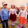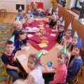 Tradycyjnie dzieci zaśpiewały „100 lat” i złożyły życzenia jubilatom. Były zabawy ruchowe i taneczne przy wesołej muzyce. Dodatkową atrakcją w gr. II był krótki występ Liwii, która uczy się gry na skrzypcach. Rodzicom dziękujemy za zadbanie o pyszny, słodki poczęstunek.