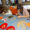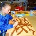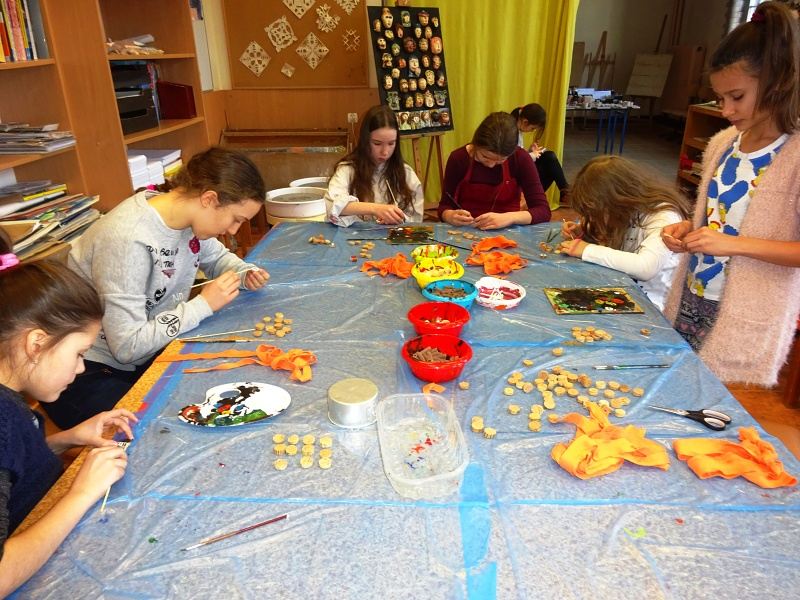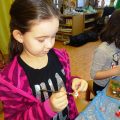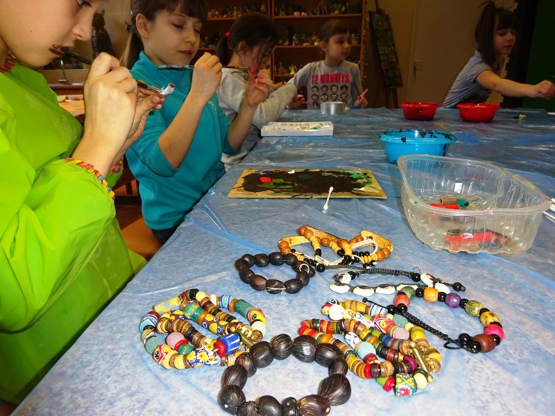 Podczas kolejnych, Etnicznych Warsztatów Twórczych Pracownia Tańca Etnicznego pod kierunkiem p.Justyny Kozłowskiej przygotowywała między innymi dodatki do kostiumów afrykańskich. Powstała biżuteria inspirowana rdzennymi bransoletkami z Afryki wykonanymi z orzechów kokosowych, nasion palm czy muszelek. Dziewczęta z ,,Małej Etniki” i ,,Etniki” malowały na tkaninach obrazy, które będą częścią wystawy przygotowywanej na zakończenie roku szkolnego. Sobotnie spotkanie było też okazją do posłuchania tradycyjnej, senegalskiej muzyki.