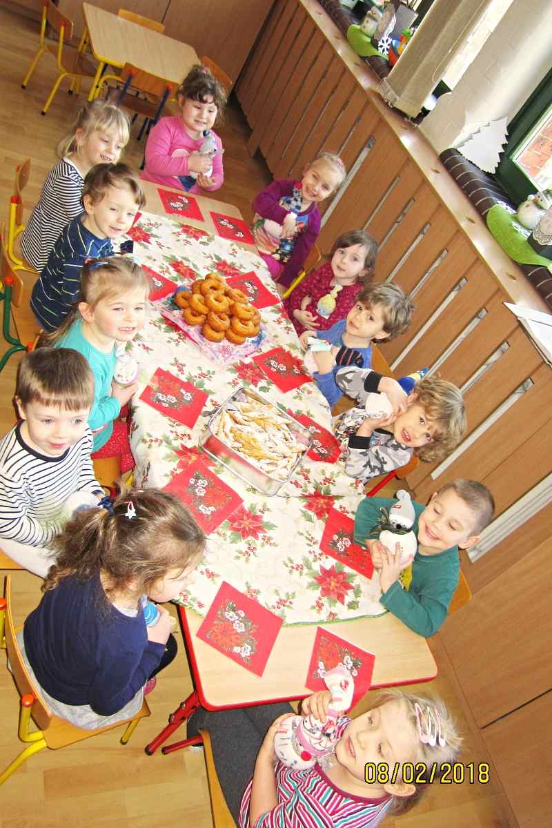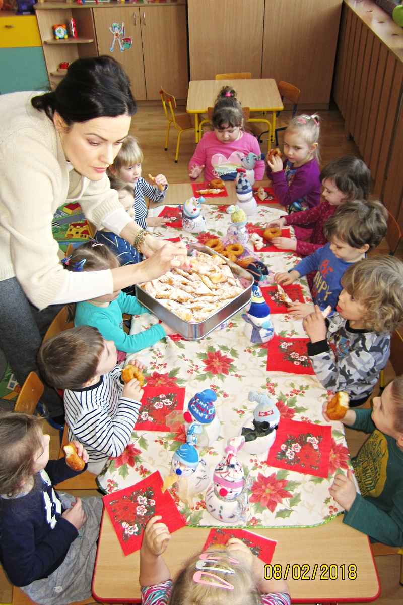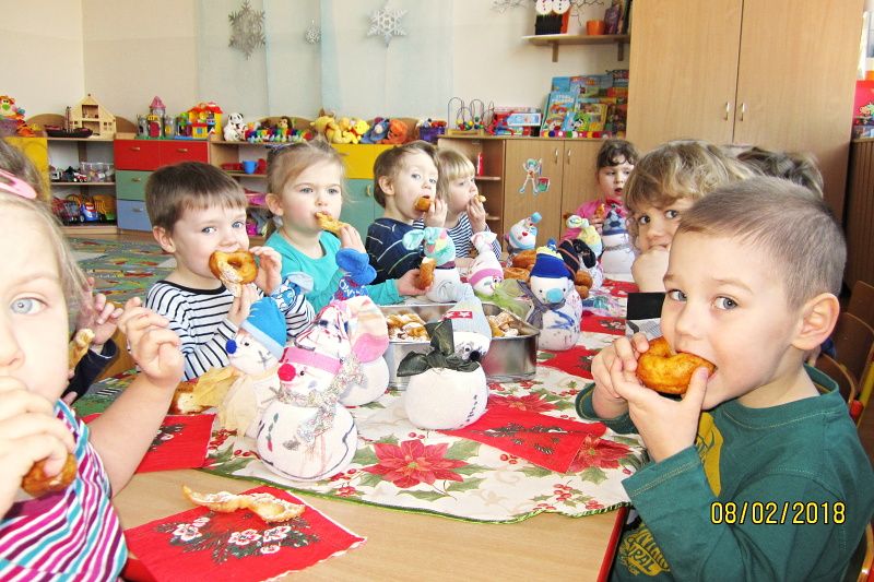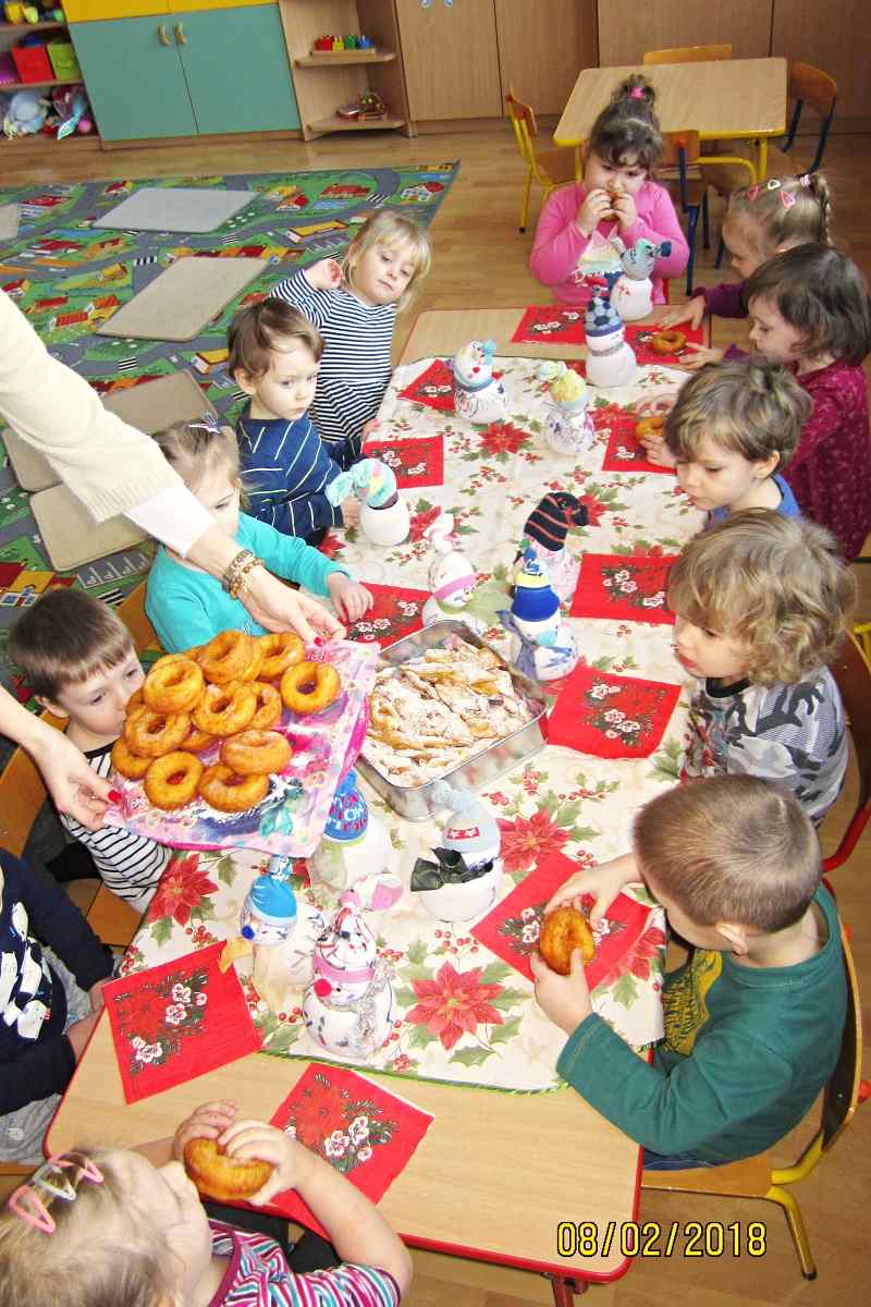 „Tłusty czwartek” u Motylków obfitował w wiele atrakcji. Rodzice Zosi specjalnie na ten dzień upiekli pyszne chrusty i oponki, które dzieci zjadły ze smakiem. Dziękujemy! Na plastyce przedszkolaki, zrobiły sobie piękne bałwanki ze kolorowych skarpet, które będą im umilały zimowy czas.