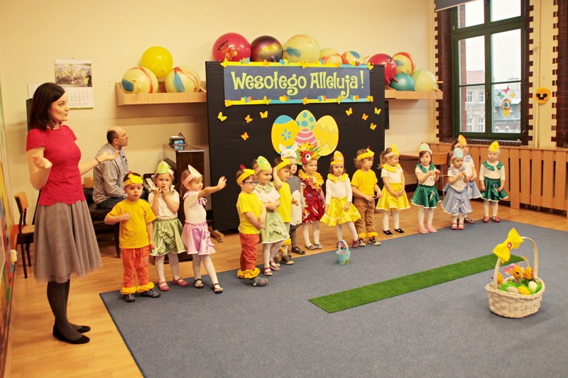 Z okazji Świąt Wielkanocnych w naszej Akademii dzieci z grup Motylków, Kangurków i Misiaczków zaprosiły rodziców na spotkanie świąteczne, które wprowadziło wszystkich w wielkanocny nastrój. Wspólnie uczestniczyli w warsztatach plastycznych, na których wykonali ozdoby świąteczne – koszyczek oraz kurczaczka, które będą miłą ozdobą na święta. Następnie dzieci z każdej grupy prezentowały występy artystyczne związane ze Świętami Wielkanocnymi, na temat tradycji i zwyczajów wielkanocnych. Wszystkim składamy słoneczne życzenia z okazji Świat Wielkanocnych i dziękujemy za wspólne spotkanie.