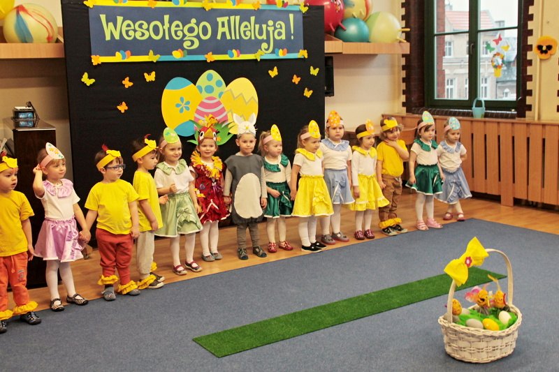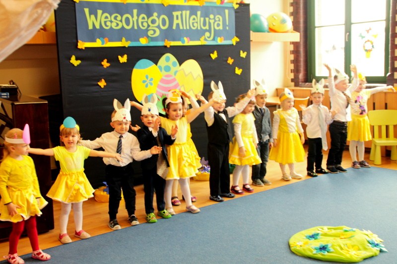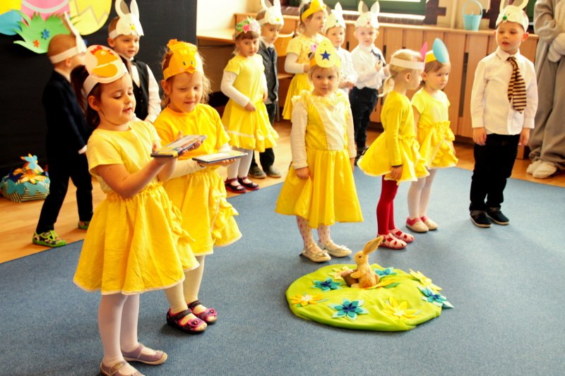 Z okazji Świąt Wielkanocnych w naszej Akademii dzieci z grup Motylków, Kangurków i Misiaczków zaprosiły rodziców na spotkanie świąteczne, które wprowadziło wszystkich w wielkanocny nastrój. Wspólnie uczestniczyli w warsztatach plastycznych, na których wykonali ozdoby świąteczne – koszyczek oraz kurczaczka, które będą miłą ozdobą na święta. Następnie dzieci z każdej grupy prezentowały występy artystyczne związane ze Świętami Wielkanocnymi, na temat tradycji i zwyczajów wielkanocnych. Wszystkim składamy słoneczne życzenia z okazji Świat Wielkanocnych i dziękujemy za wspólne spotkanie.