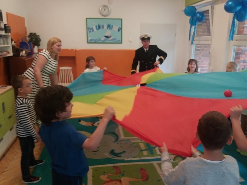 Dnia 23 kwietnia 2018 r. w Filii Przedszkola Publicznego nr 50 odbył się „Dzień na morzu”. Wszystkie przedszkolaki zamieniły się w „Wilki Morskie”, które przeniosły się w świat wielkich przygód i wypraw żeglarskich. Tego dnia przedszkole odwiedził Pan Krzysztof Jaszczuk, który przybliżył dzieciom ciekawostki z życia marynarza. Podczas wspólnej podróży dowiedzieliśmy się jak zbudowany jest statek, nauczyliśmy się czytać mapy, odbyliśmy wielką bitwę na kule armatnie, urządziliśmy wyścigi żaglowców, złowiliśmy ryby, przenosiliśmy skarby na statek, posprzątaliśmy dokładnie pokład a ostatecznie udało nam się odnaleźć Skarb Piratów. Zwieńczeniem morskiej podróży był egzamin na marynarza: marynarz jest odważny i zjada wszystkie okropne-okropności, w związku z tym zadaniem każdego przedszkolaka było wypicie łyżeczki soku z cytryny bez skrzywienia się. Możemy zapewnić, że nie była to nasza ostatnia wspólna morska podróż. AHOJ!