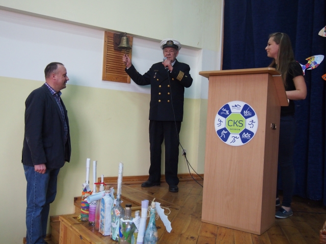 Konkurs odbył się w ramach realizacji Szczecińskiego Programu Edukacji Wodnej i Żeglarskiej „Morze przygody – z wiatrem żaglach” pod patronatem Urzędu Miasta Szczecin. Oprócz laureatów i ich opiekunów, gościliśmy przedstawicieli patronów konkursu – Przyjaciół Szkoły – dzięki którym z CKS z powodzeniem realizowana jest edukacja morska. Centrum Żeglarskie reprezentował kapitan „Daru Szczecina” Jerzy Szwoch. W imieniu WOPR Woj. Zachodniopomorskiego gościła w CKS pani Maria Adamczyk, a Pracownię Edukacji Morskiej w Pałacu Młodzieży reprezentowała pani Jolanta Gałęzowska. Uroczystość zaszczycił także swoją obecnością prawdziwy „wilk morski”, kapitan ż. w. Wiktor Czapp – honorowy przewodniczący Szczecińskiego Klubu Kapitanów Żeglugi Wielkiej. Pan kapitan w towarzystwie dyrektora CKS, Macieja Parobczego dokonał otwarcia uroczystości tradycyjnym „biciem szklanek” zabytkowym dzwonem z norweskiego żaglowca „Johannes”. Wyjaśnił także zebranym, że wysyłanie listów w butelce jest dawnym zwyczajem marynarskim, a dziś często powtarza się ten rytuał przy okazji „wodowania książki” związanej z morzem.