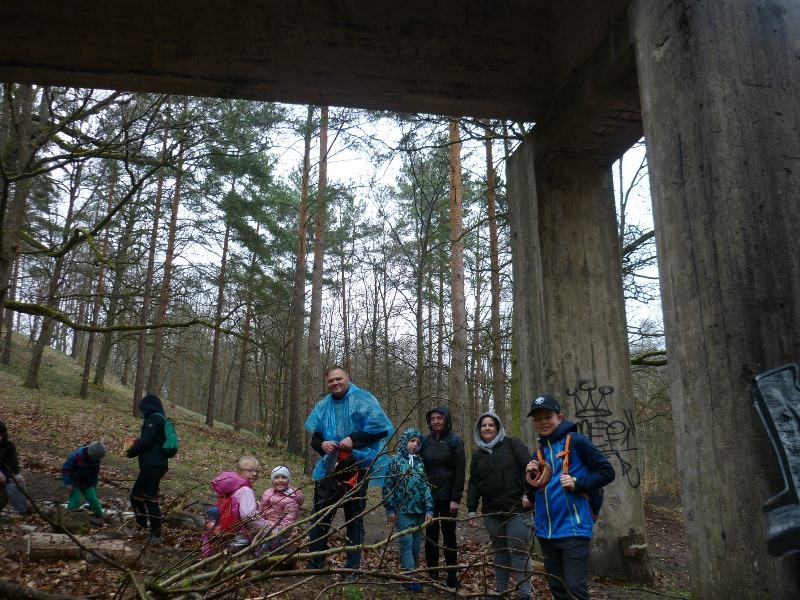 Za nami kolejna 975 Leśna Sobota. Choć niebo skryło się za chmurką, przybyli na nią wytrwali miłośnicy wędrówek po lesie. Nasz spacer rozpoczęliśmy od spotkania z przewodnikiem na przystanku w Podjuchach. Dalej udaliśmy się żółtym i czerwonym szlakiem, który doprowadził nas do strzelnicy wojskowej w Podjuchach. Tam też mieliśmy krótką przerwę śniadaniową na regenerację i nabranie sił do dalszego spaceru. Idąc dalej dotarliśmy do ziemnych nasypów i kilku nieukończonych mostów, czy też wiaduktów zwanych Uroczysko Mosty. Według informacji, na wybudowanych w celach szkoleniowych obiektach wielorazowego użytku uczono saperów, jak naprawiać i niszczyć mosty. W ścianach betonowych przyczółków zachowały się gotowe otwory do zakładania ładunków wybuchowych.