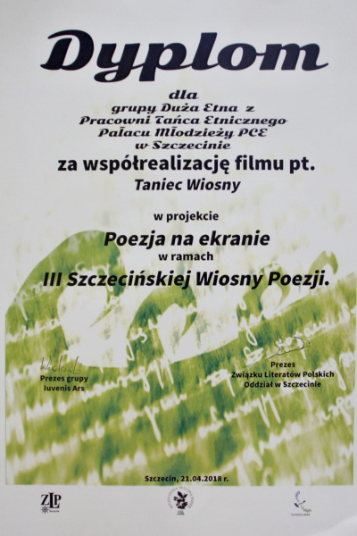 Z tej okazji powstała etiuda poetycka „Taniec Wiosny”, w której wykorzystano tekst p. Małgorzaty Hrycaj (wiersze: sierpniowo, feromony wiosny) w choreografii Justyny Kozłowskiej. Zatańczyła grupa ,,Duża Etna” z Pracowni Tańca Etnicznego. Film zrealizował p. Szymon Pawlik.