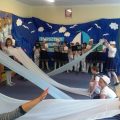 W kwietniu w ramach działań koła morskiego w przedszkolu odbyły się warsztaty wiedzy morsko-żeglarskiej poprowadzone przez panią Jolę Gałęzowską z programu Edukacji Morskiej w Szczecinie. W czasie warsztatów dzieci poznały wiele ciekawych informacji na temat budowy statków, obejrzały różne żaglowce, posłuchały ciekawostek a nawet przesądów o żeglowaniu.