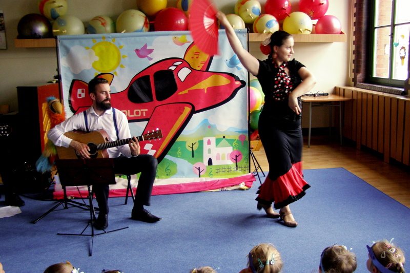 SPOTKANIA Z TEATREM I MUZYKĄ. DODO W PODRÓŻY DOOKOŁA ŚWIATA to projekt dzięki któremu, pałacowe przedszkolaki poznają brzmienie i rytmy muzyki z różnych zakątków naszego globu. 16 maja dzieci wyruszyły ze swoim przewodnikiem, ptakiem DODO do Hiszpanii! Jak zawsze takiej podróży towarzyszyły charakterystyczne brzmienia, rytmy, instrumenty i taniec!