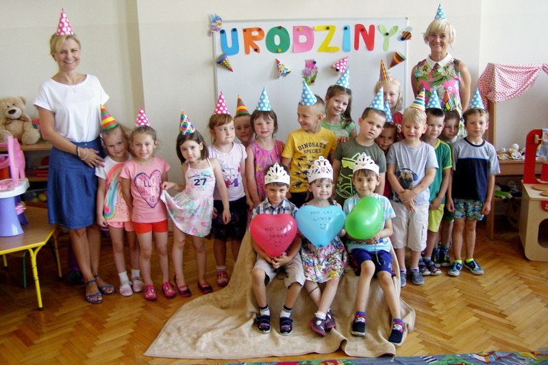Tradycyjnie, jak co miesiąc pałacowe przedszkolaki świętowały w maju i czerwcu urodziny Jubilatów. W maju był to Filip, Liwia oraz Janek Ch. z grupy II. W czerwcu urodziny obchodzą Ola, Łucja i Stasiu w grupie I, Zuzia w grupie II oraz Marcel i Marcelina w grupie III. Wesołe minki towarzyszyły wszystkim jubilatom i ich kolegom oraz koleżankom podczas urodzinowych zabaw. Nie zabrakło gromkiego „Sto lat” i słodkich poczęstunków, za przygotowanie których dziękujemy rodzicom. Dzieciom życzymy jak zawsze WSZYSTKIEGO CO NAJLEPSZE!