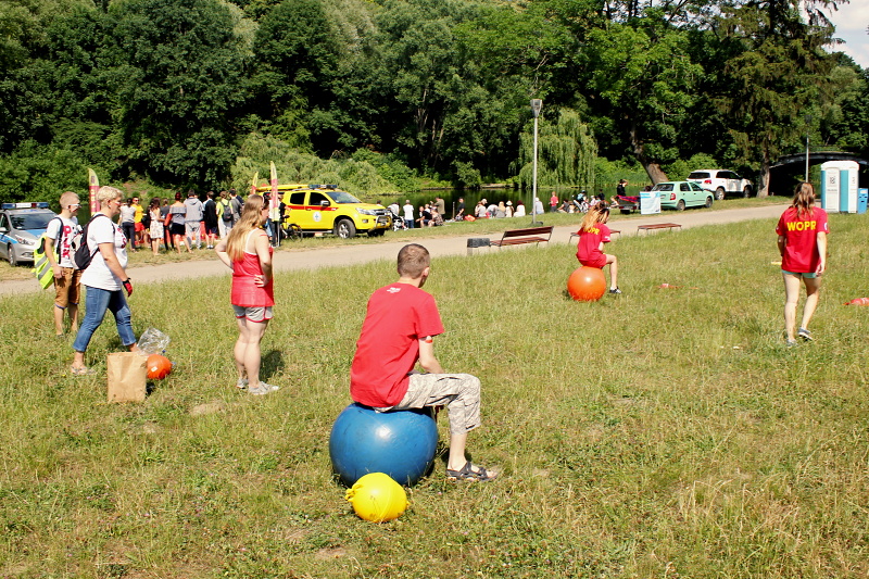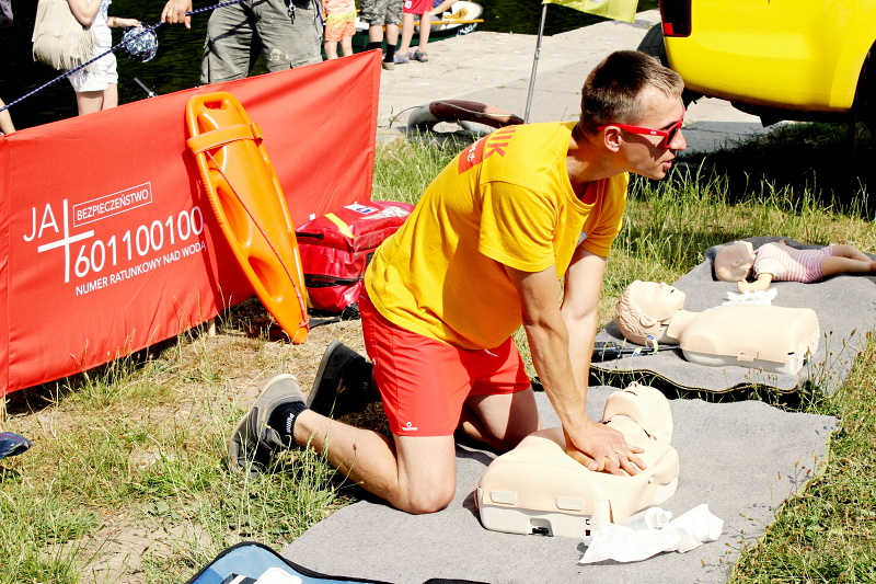 Potem był czas na słodki poczęstunek, konkursy i zabawy sportowo – rekreacyjne. Ratownicy z Wodnego Ochotniczego Pogotowia Ratunkowego oraz Policji Wodnej przeprowadzili bardzo ciekawe pogadanki, pokazy i konkursy na temat jak być bezpiecznym w wodzie i nad wodą. Ogromną popularnością cieszyły się pokazy reanimacji. Każdy mógł spróbować swoich sił i zobaczyć jak ważne dla życia poszkodowanego są pierwsze minuty reanimacji.