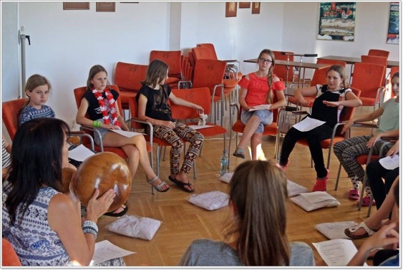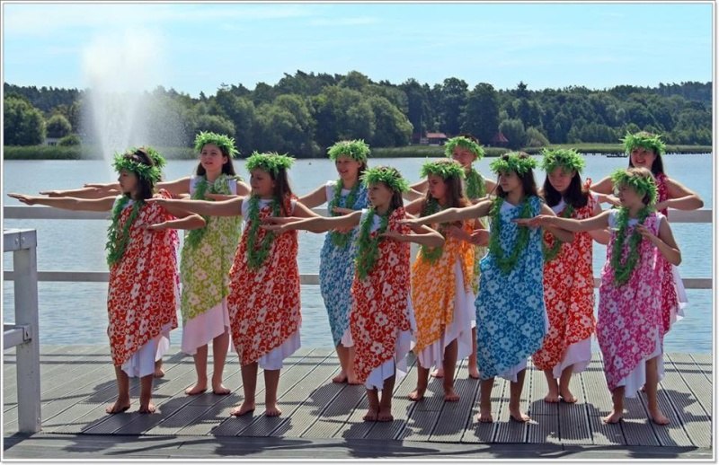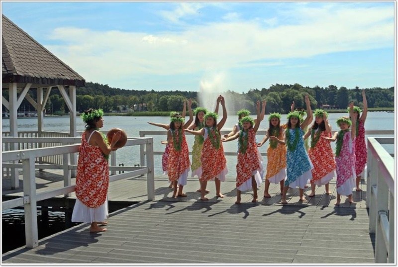 Można powiedzieć, że Hawaje w Barlinku zagościły na dobre. Przekonali się o tym mieszkańcy, oglądając pokaz tańca w centrum miasta i nad jeziorem, a także Pani Dyrektor Pałacu Młodzieży, która odwiedziła całą grupę, przywożąc od Rady Rodziców niespodzianki(bloki, kredki) do pracy twórczej. Warsztatom towarzyszyło także UKULELE, na którym z ogromnym zaangażowaniem i pasją grała Lakszmi Dżaman z grupy ,,Etna”. Nie zabrakło również dźwięku fortepianu, który dzięki siostrom – Lakszmi i Aurelii ożył, tworząc piękny akompaniament do nowego tańca orientalnego z wachlarzowoalami.