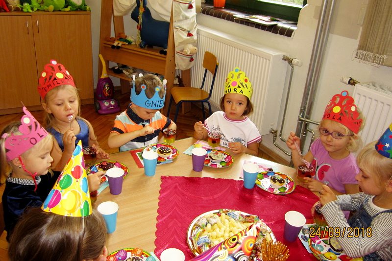24 września uroczyście obchodziliśmy w pałacowej Akademii Edukacji Przedszkolaka urodzinki dzieci urodzonych w sierpniu i we wrześniu. Jubilatom w gr. I byli: Alan, Oliwka, Martyna, Olek, Laura. W grupie II: Gniewko, Emilka, Laura, Nikola i Oliwia. W grupie III: Maciuś, Maksymilian, Światosław, Małgosia.