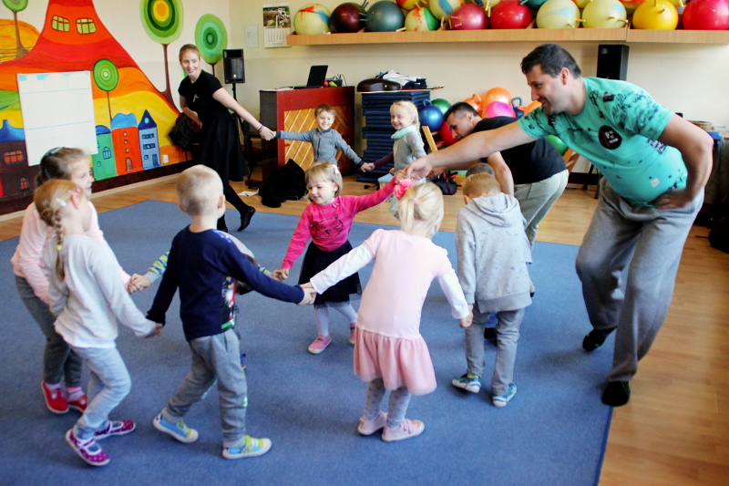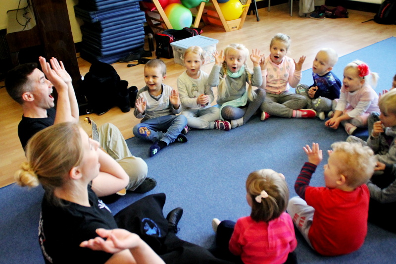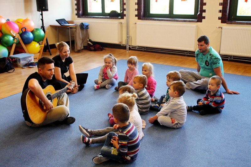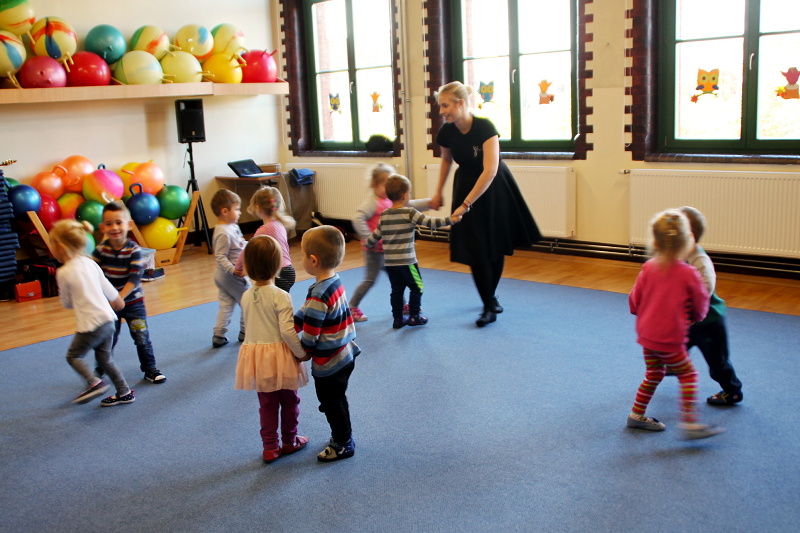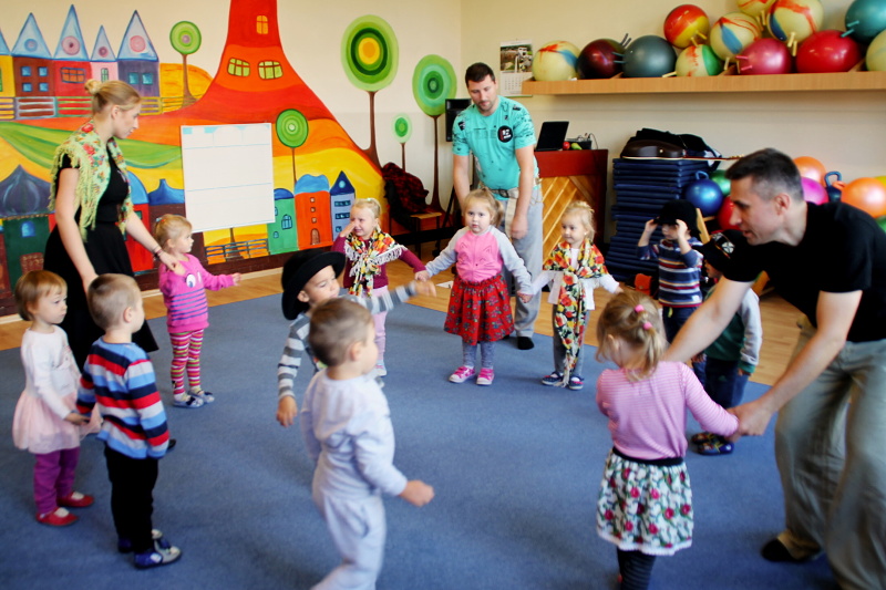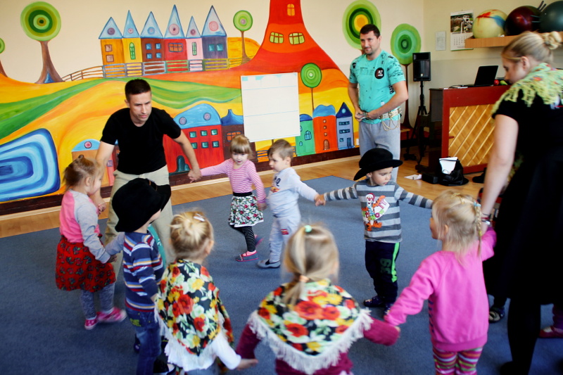 Zajęcia w grupach odbywają się w każdą środę. Na pierwszym spotkaniu 3 października, dzieci świetnie się bawiły poznając kroki do tańca o wdzięcznej nazwie „gołąbek”, wysłuchały również brzmienia gitary i ludowej piosenki o pewnym koniku.