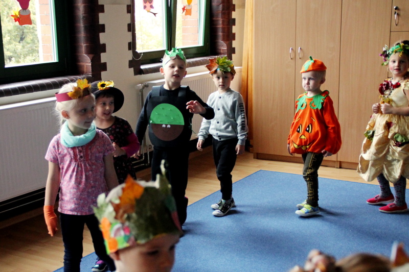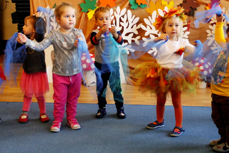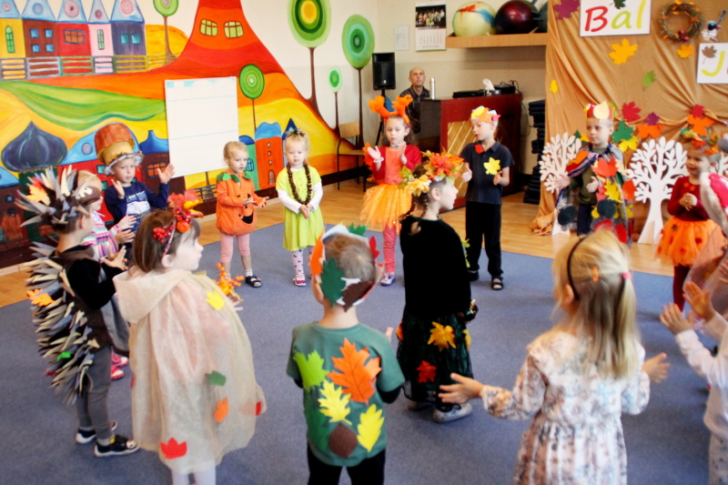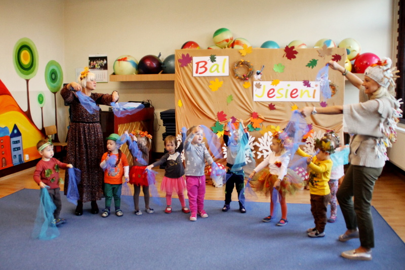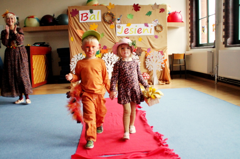 Październik pałacowe przedszkolaki rozpoczęły od powitania nowej pory roku! Na Balu Jesieni nie brakowało kolorów i pięknych strojów, które maluchy miały okazję zaprezentować na… czerwonym dywanie! Wspólny śpiew, taniec i podskoki – tak dzieci powitały Panią Jesień.