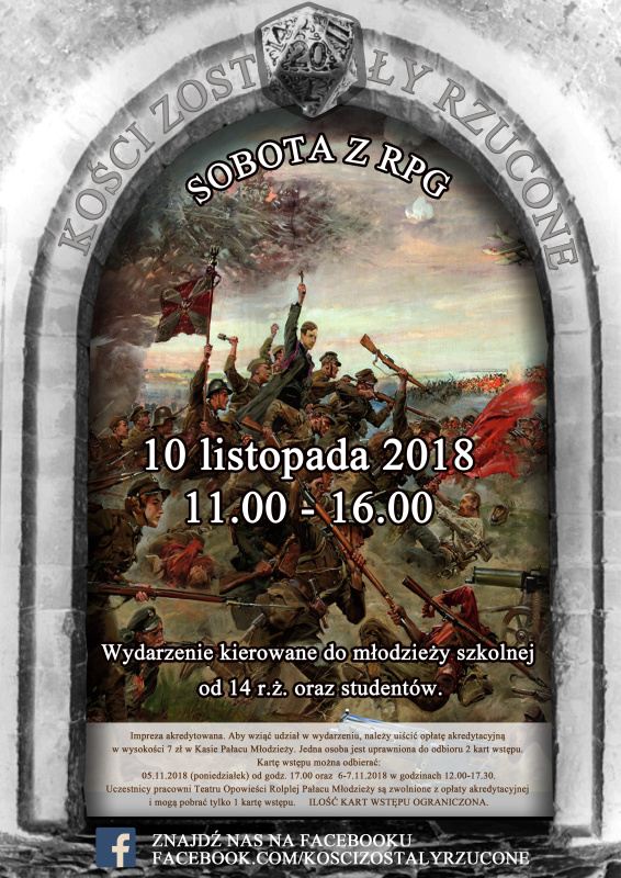 Najbliższe „Kości” będą dla nas szczególne z dwóch powodów: po pierwsze jest to nasza jubileuszowa, trzydziesta odsłona, w której szczecińscy Mistrzowie Gry poprowadzą sesje dla młodych mieszkańców Szczecina i okolic, i po wtóre, z uwagi na datę, tj. 10 listopada, będziemy w ich trakcie świętowali na nasz eRPeGowy sposób odzyskanie przez Polskę niepodległości. Łącząc te dwie rzeczy doszliśmy do wniosku, że należy dać graczom odczuć klimat tamtych czasów i zabrać ich w głąb historii. Jednocześnie weszliśmy we współpracę z wydawnictwem Black Monk, które przygotowało dla naszych uczestników parę niespodzianek. Dla wszystkich chętnych zostanie przeprowadzony konkurs wiedzy o twórczości H.P. Lovecrafta, mitologii Cthulhu oraz systemie „Zew Cthulhu”. Przewidujemy nagrody! Zapraszamy serdecznie już 10 listopada do Pałacu Młodzieży!