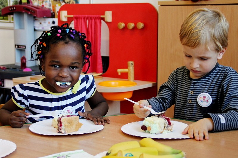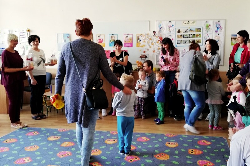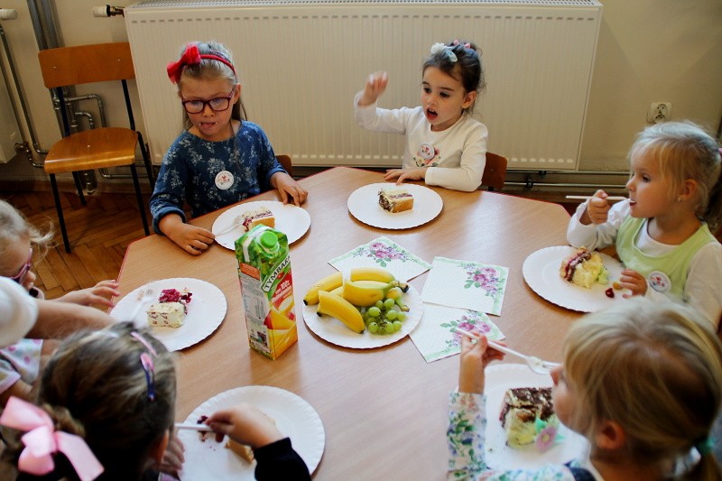 Z okazji Dnia Edukacji Narodowej, w Akademii Edukacji Przedszkolaka jak zawsze nie zabrakło, życzeń i kwiatów. Były też słodkości i tort przygotowany przez jedną z mam. Pałacowe przedszkolaki z grupy I i II wraz z rodzicami, przygotowały dla swoich pań niezwykłą niespodziankę. W tajemnicy nagrały krótki filmik z wierszowanymi podziękowaniami. Prezentacja odbyła się w poniedziałek, na dużym ekranie.Przedszkolaki w tym dniu otrzymały od Pań jubileuszowe przypinki z Akademią Edukacji Przedszkolaka, która obchodzi właśnie swoje 10 -lecie. Było pięknie i wzruszająco! Brawa dla dzieci za utrzymanie niespodzianki w tajemnicy i wspaniałe występy! A Rodzicom oczywiście dziękujemy za zaangażowanie!