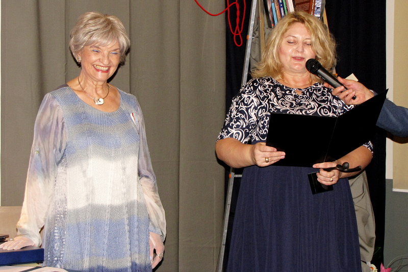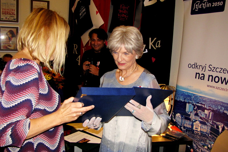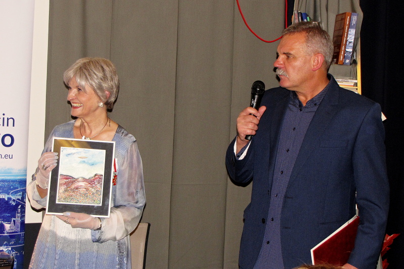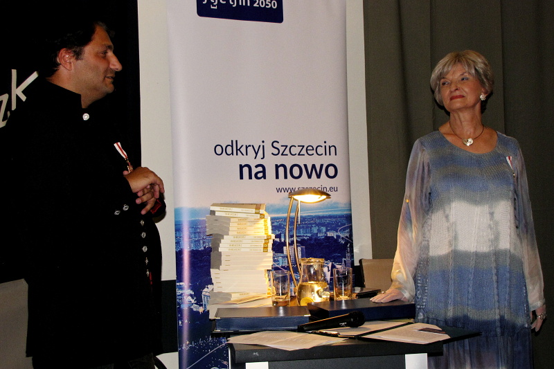 Lecz nie był to koniec podziękowań, gdyż, tak jak powiedziała Róża Czerniawska-Karcz, „przyjemnością jest nie tylko branie, ale i dawanie”, stąd prezes oddziału ZLP Leszek Dembek wraz z Różą Czerniawską-Karcz, Rafałem Podrazą i Edwardem Siekierzyńskim podziękowali Dyrektor Wydziału Kultury Urzędu Miasta Szczecin – Agacie Stankiewicz – za wieloletnią satysfakcjonującą współpracę i wręczyli medal okolicznościowy PRO MEMORIA… autorstwa Edwarda Siekierzyńskiego.