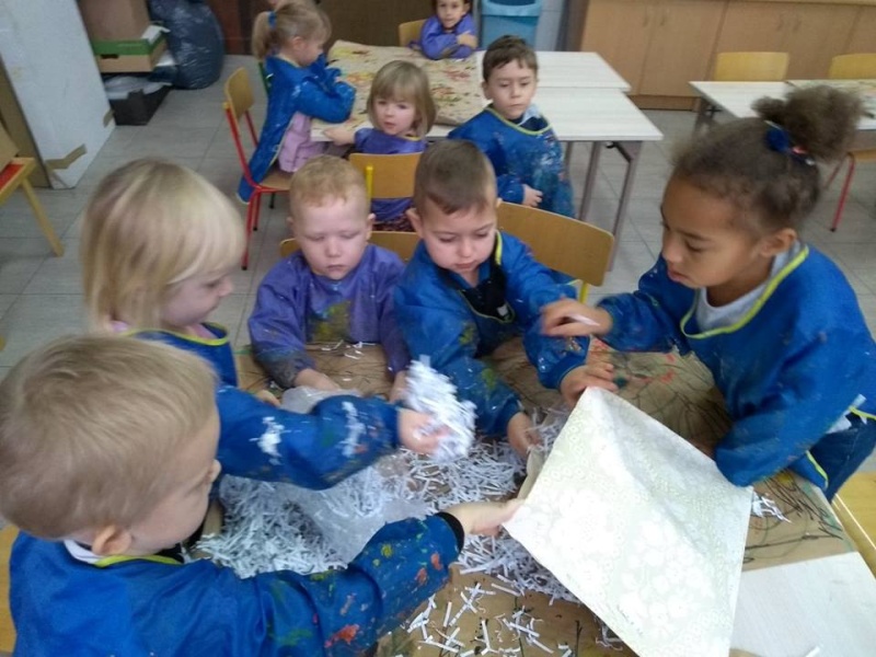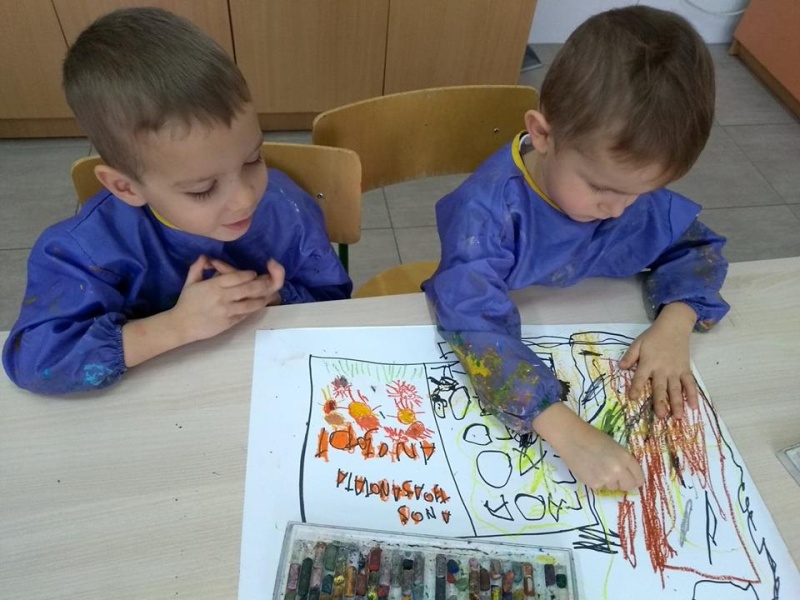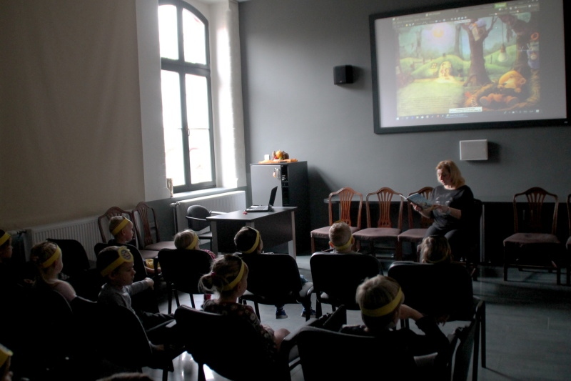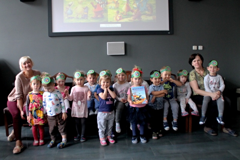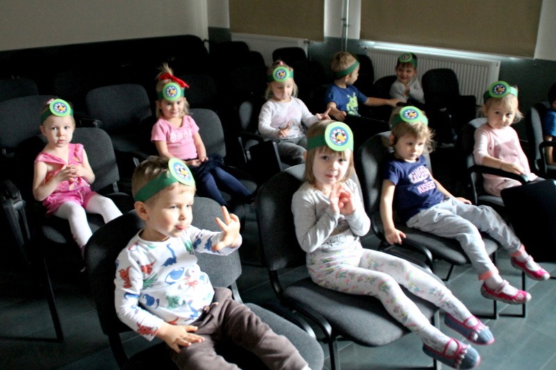 W październiku odbyło się kolejne spotkanie z Małym Krukiem, bohaterem serii, którą czytają w tym roku szkolnym pałacowe przedszkolaki. Ty razem historia była lekcją wartości przyjaźni. Jak zawsze dzieci wysłuchały opowieści w sali multimedialnej, a na dużym ekranie mogły zobaczyć ilustracje. Na zajęciach plastycznych stworzyły prace, które można podziwiać na trzecim piętrze. Warto zapytać dlaczego takie właśnie przedmioty otaczają Małego Kruka. Rower? Poduszka? Książka? Wóz strażacki? Co mają wspólnego z przeczytaną historią?