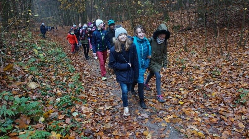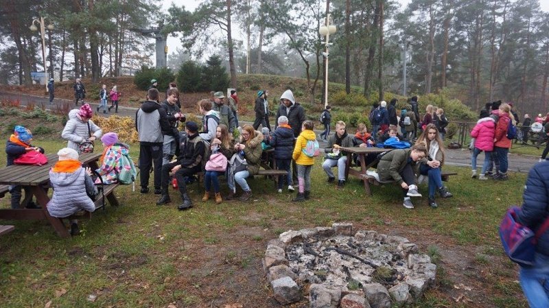 Rajd rozpoczęliśmy na pętli tramwajowej Las Arkoński. Czerwonym szlakiem dotarliśmy do Osowa. Przechodząc obok Akademickiego Ośrodka Jeździeckiego Zachodniopomorskiego Uniwersytetu Technologicznego podziwialiśmy konie. Po przejściu 4 km był odpoczynek na Szczecińskiej Gubałówce. Na Wielecką Górę dotarliśmy zielonym szlakiem. Był to nasz drugi szczyt zdobyty w tym roku szkolnym. W rajdzie wzięło udział 148 osób z 8 szkół.