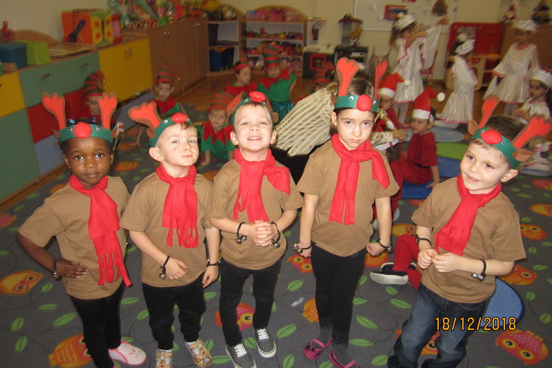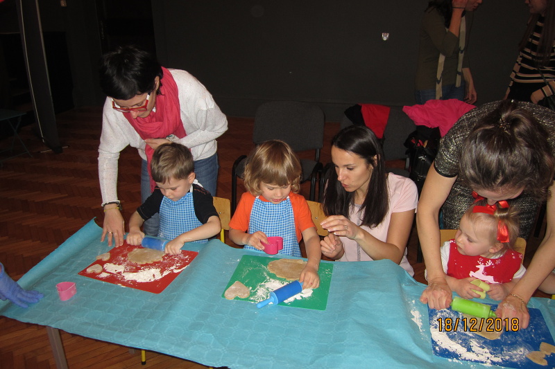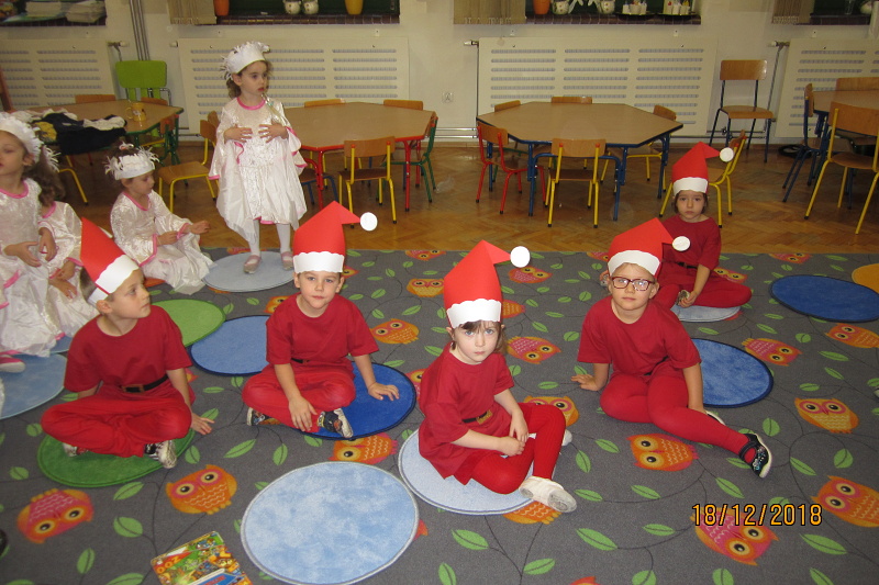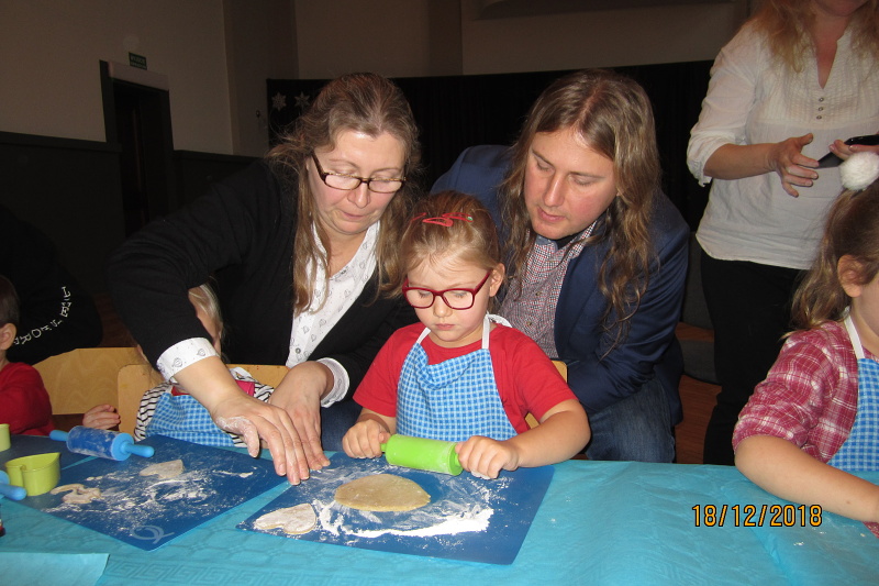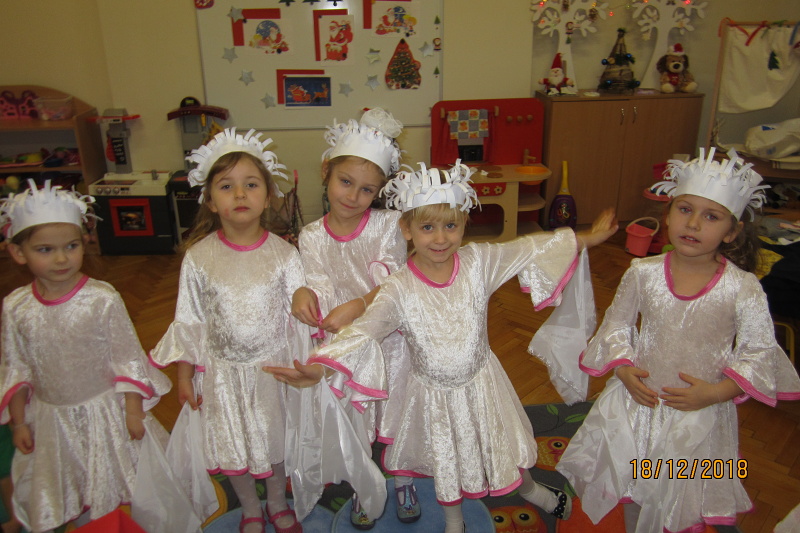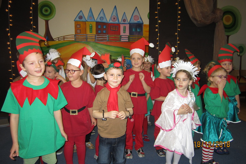 Z okazji zbliżających się Świąt Bożego Narodzenia 18 grudnia zaprosiliśmy na spotkanie rodziców dzieci z gr. II Kangurki. Była to wspaniała okazja, aby zaprezentować rodzicom przygotowane przez nas przedstawienie świąteczne, w którym „aniołki szukały choinki, elfy wiozły ją dla wszystkich, reniferki spieszyły się pędząc saniami a mikołaje miały wielki worek pełen prezentów”. Dzieci zaśpiewały piękne piosenki i kolędy a wzruszeniom nie było końca. Po przedstawieniu wszyscy udaliśmy się na „Warsztaty pieczenia pierników świątecznych”, aby osłodzić i „posmakować” świąteczny czas. Dzieci wręczyły rodzicom przygotowane na zajęciach plastycznych anioły. Wszystkim życzymy wesołych świąt!