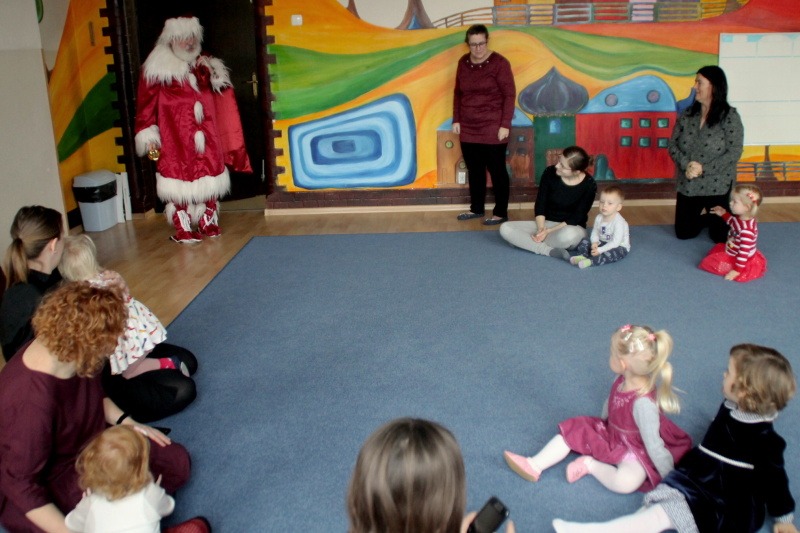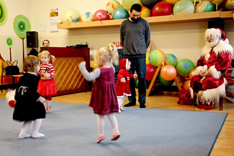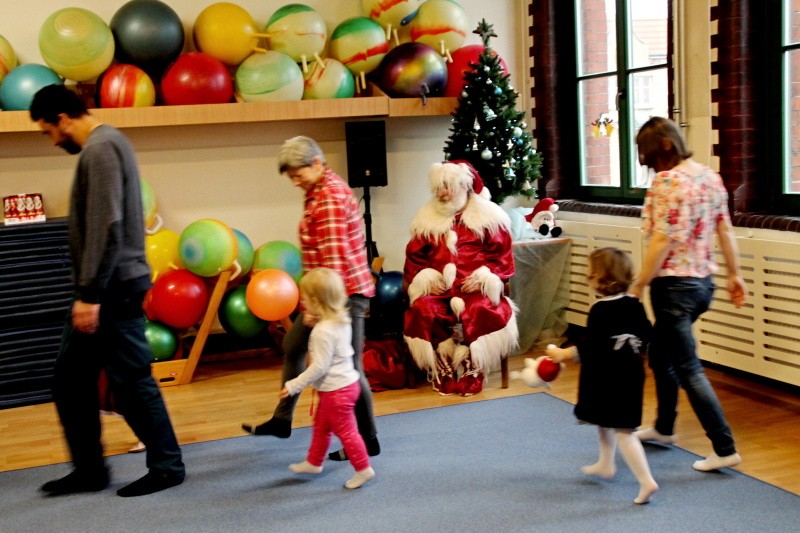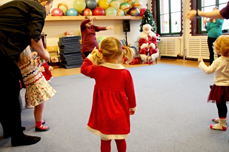 Święta tuż, tuż, więc do pałacowych pracowni zagląda Mikołaj. Sprawdza czego nauczyły się maluchy podczas zajęć… Czasem obdarowuje drobnymi prezentami. Tak jak w poniedziałek, 3 grudnia gdy przybył do Pracowni Rytmiki p. Barbary Marcinkowskiej – Boruszak.