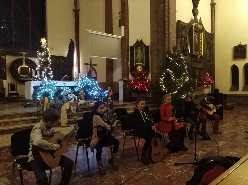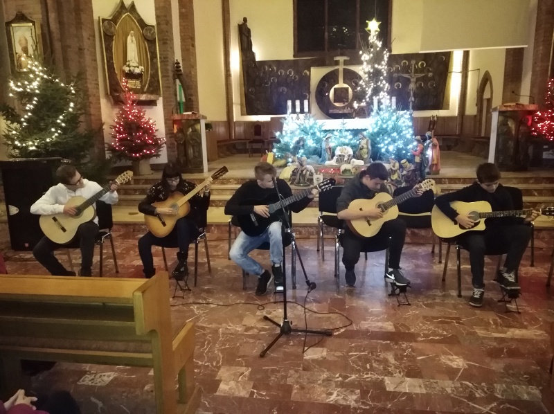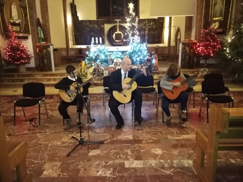 W niedzielę 20 stycznia, uczestnicy Pracowni Gitarowej, pod opieką artystyczną p. Szymona Lipskiego mieli okazję zaprezentować się w świątecznym repertuarze, w Kościele pod wezwaniem św. Stanisława Kostki (Plac Matki Teresy z Kalkuty). Niezwykła akustyka, czas, miejsce i dobór utworów, wprowadziły publiczność w nastrój pełen nostalgii.